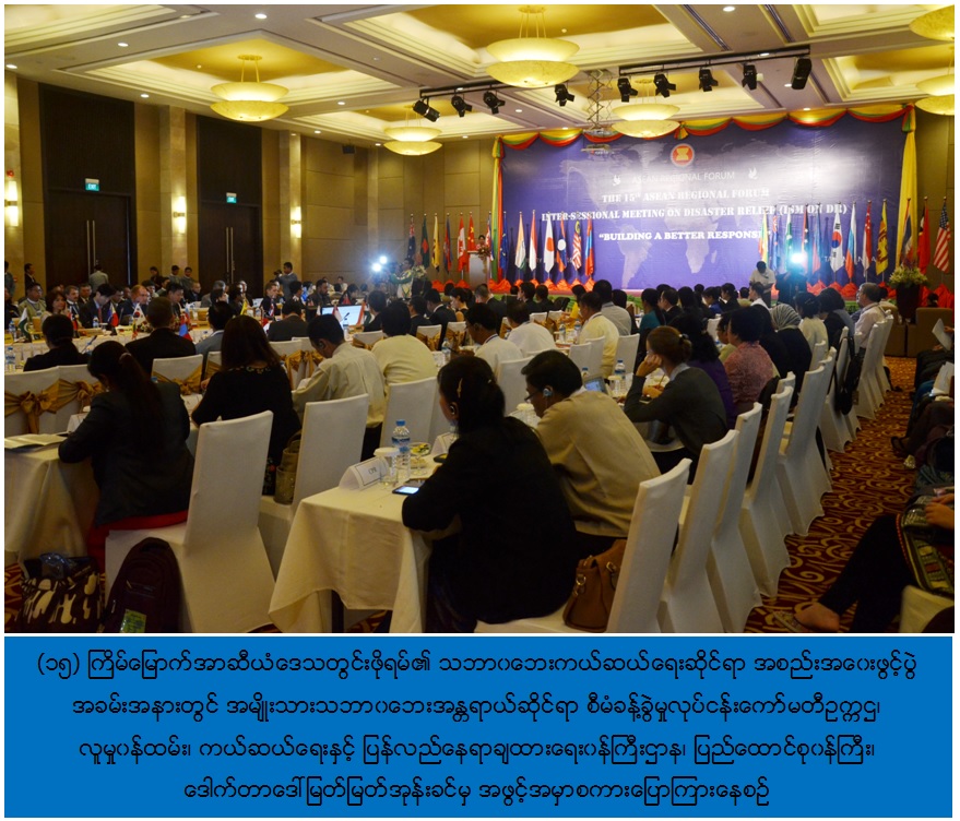 (၂)ရက်ကြာ ကျင်းပမည့် အစည်းအဝေးတွင် အာဆီယံ ဒေသတွင်း ဖိုရမ်အဖွဲ့၀င် (၂၆) နိုင်ငံများမှ ကိုယ်စားလှယ်များသည် ပိုမိုကောင်းမွန်တဲ့ တုန့်ပြန်ဆောင်ရွက်ရေး (Building a better Response) အတိုင်း အာဆီယံဒေသအတွင်းအရပ်ဘက်နှင့်တပ်မတော်တို့ ပူးပေါင်းဆောင်ရွက်ရေးစနစ်များ အပါအ၀င် ဒေသတစ်ခုတုန့်ပြန်မှုတစ်ခု(One ASEAN One Response) ဖြစ်ပေါ်လာရေးအတွက် ညှိနှိုင်းဆွေးနွေးကြမည်ဖြစ်ကြောင်း သိရှိရပါသည်။