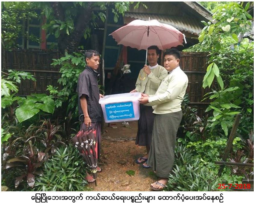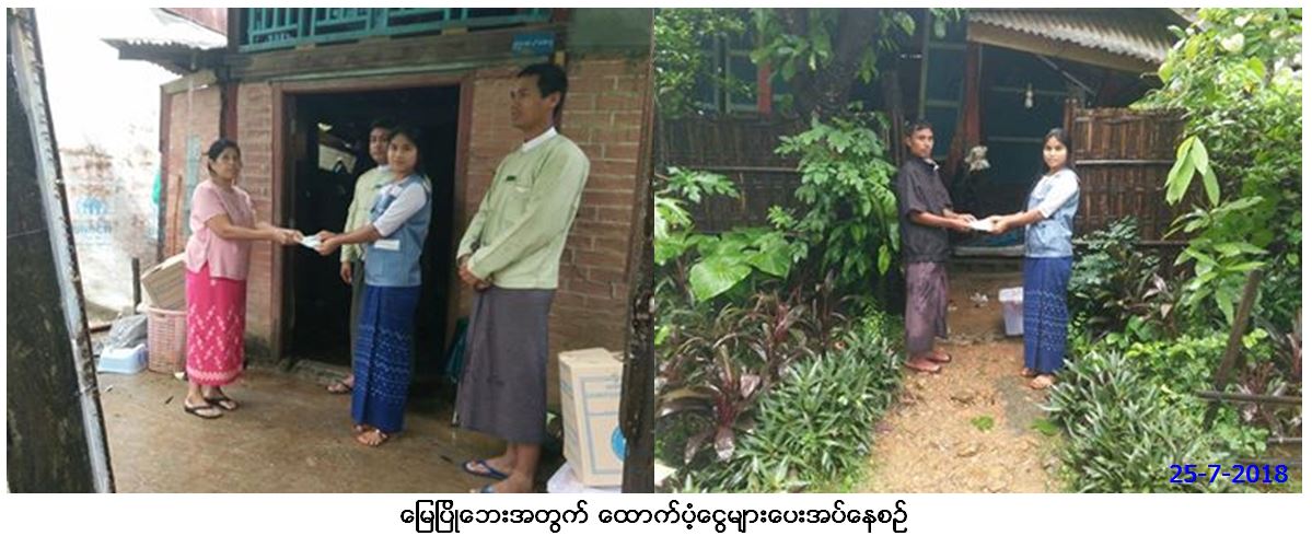 လူမှုဝန်ထမ်း၊ ကယ်ဆယ်ရေးနှင့် ပြန်လည်နေရာချထားရေးဝန်ကြီးဌာန၊ ဘေးအန္တရာယ်ဆိုင်ရာစီမံခန့်ခွဲမှုဦးစီးဌာန၊ မြောက်ဦးခရိုင်ဦးစီးမှူးရုံးမှ တာဝန်ရှိသူများသည် (၂၅.၇.၂၀၁၈)ရက်နေ့ နံနက်(၇:၃၀)အချိန်တွင် မိုးသည်းထန်စွာရွာသွန်းမှုကြောင့် မြောက်ဦးမြို့၊ ညောင်ပင်ဈေးရပ်ကွက် ၊ညောင်ပင်ဈေးရပ်ရှိ ဟာရီတောင်မြေပြိုမှုကြောင့် လုံးဝပျက်စီးသွားသောလူနေအိမ်(သွပ်မိုး၊ ဝါးကာ၊ ပျဉ်ခင်း)(၁)လုံး၊ တစ်စိတ်တစ်ပိုင်း ပျက်စီးသွားသော လူနေအိမ်(သွပ်မိုး၊ ဝါးကာ၊ အုပ်ညှပ်)(၁)လုံး တစ်စိတ်တစ်ပိုင်းပျက်စီးသွားသော လူနေအိမ်(သွပ်မိုး၊ပျဉ်ကာ၊ပျဉ်ခင်း)(၁)လုံး လုံးဝပျက်စီးသွားသော အိမ်ထောင်စု(၁)စုအတွက် ကယ်ဆယ်ရေးပစ္စည်း(၁၅)မျိုး၊ တန်ဖိုး(၃၂၃၅၃ိ/-)ကျပ်၊ အိမ်ဆောက်ပစ္စည်းဖိုး(၁၀၀၀၀၀ိ/-)၊ တစ်စိတ်တစ်ပိုင်းပျက်စီးသွားသောအိမ်ထောင်စု(၂)စုအတွက် ကယ်ဆယ်ရေးပစ္စည်း(၁၀)မျိုး၊ တန်ဖိုး(၂၅၀၂၀ိ/-)၊အိမ်ဆောက်ပစ္စည်းဖိုး (၁၀၀၀၀၀ိ/-)၊ လူဦးရေ(၁၀)ဦးအတွက် ဆန်ရိက္ခာ(၇)ရက်စာဖိုး(၂၁၀၀၀ိ/-)တို့အား (၂၅.၇.၂၀၁၈)ရက်နေ့တွင် ဘေးသင့်ပြည်သူများ လက်ဝယ်အရောက် ထောက်ပံ့ခဲ့ကြောင်း သတင်းရရှိပါသည်။