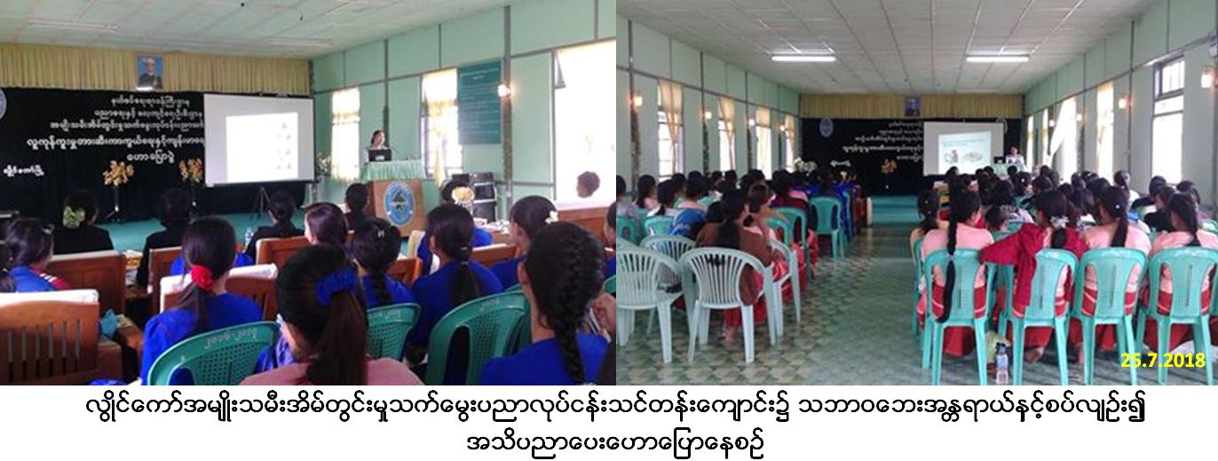 လူမှုဝန်ထမ်း၊ ကယ်ဆယ်ရေးနှင့် ပြန်လည်နေရာချထားရေးဝန်ကြီးဌာန၊ ဘေးအန္တရာယ်ဆိုင်ရာစီမံခန့်ခွဲမှုဦးစီးဌာန၊ ကယားပြည်နယ်ဦးစီးမှူးရုံးမှတာဝန်ရှိသူများသည် (၂၅-၇-၂၀၁၈) ရက်နေ့တွင် လွိုင်ကော်အမျိုးသမီးအိမ်တွင်းမှုသက်မွေးပညာလုပ်ငန်းသင်တန်းကျောင်း၌ သဘာဝဘေးအန္တရာယ်နှင့်စပ်လျဉ်း၍ အသိပညာပေး ဟောပြောခဲ့ပြီး၊ တက်ရောက်လာသူ သင်တန်းသူ (၈၀) ဦးအားလက်ကမ်းစာစောင်များဝေငှခဲ့ကြောင်း သတင်းရရှိပါသည်။