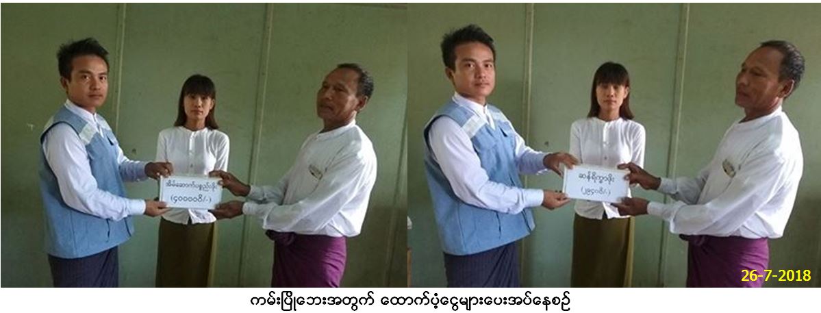 လူမှုဝန်ထမ်း၊ ကယ်ဆယ်ရေးနှင့်ပြန်လည်နေရာချထားရေးဝန်ကြီးဌာန၊ ဘေးအန္တရာယ်ဆိုင်ရာစီမံခန့်ခွဲမှုဦးစီးဌာန၊ မကွေးတိုင်းဒေသကြီး၊ ပခုက္ကူခရိုင်၊ ရေစကြိုမြို့နယ်ဦးစီးမှူးရုံးမှ တာဝန်ရှိသူများသည် ရေစကြိုမြို့နယ်၊ ကွေ့ထောင့်ကျေးရွာအုပ်စု၊ ကွေ့ထောင့်ကျေးရွာနှင့် မိုးကွဲကျေးရွာအုပ်စု၊ ချင်းယားကျေးရွာတို့တွင် (၂၆.၇.၂၀၁၈)ရက်နေ့၊ (၁၀း၃၀)နာရီအချိန်၌ ချင်းတွင်းမြစ်နှင့် ဧရာဝတီမြစ်ရေတိုက်စား၍ကမ်းပါးပြို ကျမှုကြောင့် ကြိုတင်ဖျက်သိမ်းပြောင်းရွှေ့မှုများ ဆောင်ရွက်ခဲ့ကြရာ ကြိုတင်ဖျက်သိမ်းပြောင်းရွှေ့လူနေအိမ်(၄)လုံး၊ အိမ်ထောင်စု(၄)စု၊ လူဦးရေ(၁၄)ဦးတို့အတွက် ကယ်ဆယ်ရေးပစ္စည်း(၉)မျိုး၊ ဆန်ရိက္ခာဖိုး(၇)ရက်စာ(၂၉၄၀၀ိ/-)၊ အိမ်ဆောက်ပစ္စည်းဖိုး(၄၀၀၀၀၀ိ/-)ကျပ်၊ စုစုပေါင်း (၄၂၉၄၀၀ိ/-)ကျပ်တို့အား (၂၆.၇.၂၀၁၈)ရက်နေ့တွင် ရေစကြိုမြို့နယ်အထွေထွေအုပ်ချုပ်ရေးဦးစီးဌာနရုံး၌ မြို့နယ်အထွေထွေအုပ်ချုပ်ရေးရုံး မှ တာဝန်ရှိသူများနှင့်အတူ သက်ဆိုင်ရာ ကျေးရွာအုပ်ချုပ်ရေးမှူးများလက်ဝယ်အရောက် ထောက်ပံ့ပေးအပ်ခဲ့ကြောင်း သတင်းရရှိပါသည်။