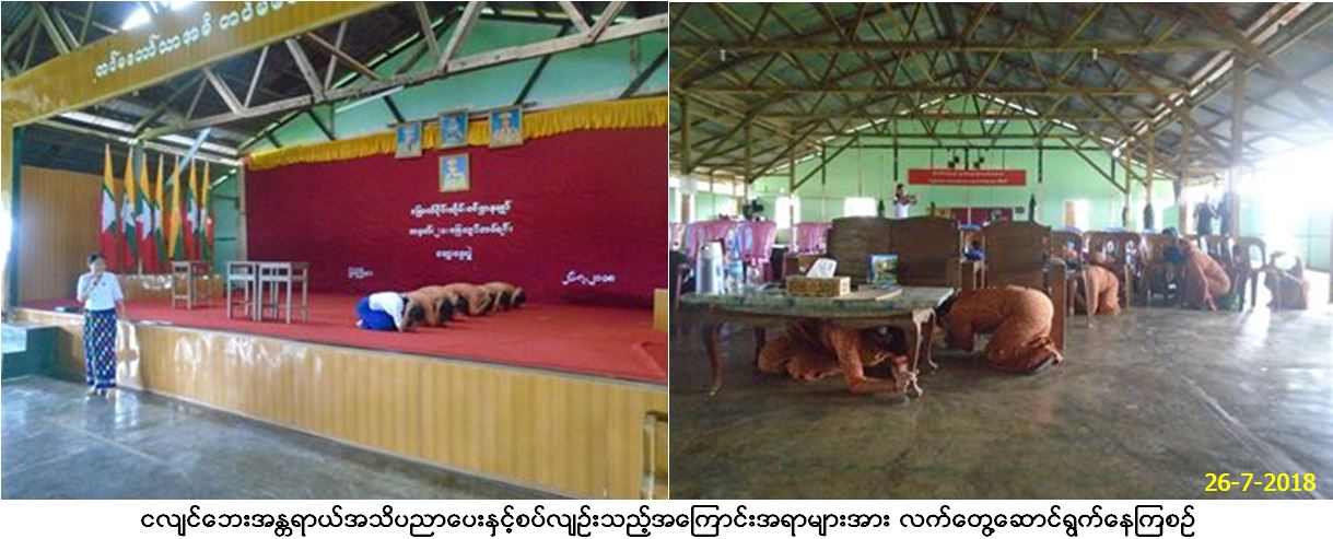လူမှုဝန်ထမ်း၊ ကယ်ဆယ်ရေးနှင့်ပြန်လည်နေရာချထာရေးဝန်ကြီးဌာန၊ ဘေးအန္တရာယ်ဆိုင်ရာစီမံခန့်ခွဲမှုဦးစီးဌာန၊ ကချင်ပြည်နယ်ဦးစီးမှူးရုံးမှ ပြည်နယ်ဦးစီးမှူးနှင့် တာဝန်ရှိသူများသည် မြစ်ကြီးနားမြို့၊ မြောက်ပိုင်းတိုင်းစစ်ဌာနချုပ်၊ အမှတ်(၂၁)ခြေလျင်တပ်ရင်းတွင် အရာရှိစစ်သည်၊ ရဲမေများနှင့် တပ်မတော်သားမိသားစုဝင် (၅၀)ကျော်တို့အား သဘာဝဘေးအန္တရာယ်သိကောင်းစရာများနှင့် ငလျင်ဘေးအန္တရာယ် အသိ ပညာပေးဆွေးနွေးဟောပြောခြင်းများပြုလုပ်ဆောင်ရွက်ခဲ့ပြီး အားလုံးပူးပေါင်းပါဝင်သော လက်တွေ့လေ့ကျင့်မှုအား (၂၆-၇-၂၀၁၈)ရက်နေ့ (၁၀း၀၀)နာရီမှ (၁၁း၃၀)နာရီ အထိ ပြုလုပ်ဆောင်ရွက်ခဲ့ကြောင်း သတင်းရရှိပါသည်။