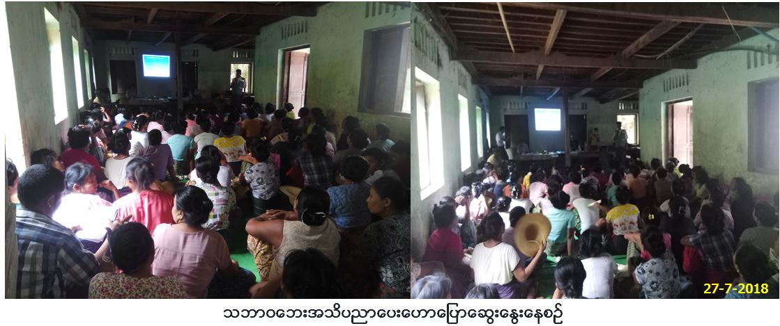 လူမှုဝန်ထမ်း၊ ကယ်ဆယ်ရေးနှင့် ပြန်လည်နေရာချထားရေးဝန်ကြီးဌာန၊ ဘေးအန္တရာယ်ဆိုင်ရာစီမံခန့်ခွဲမှုဦးစီးဌာန၊ ပခုက္ကူခရိုင်ဦးစီးမှူး ရုံးမှ တာဝန်ရှိသူများသည် (၂၇-၇-၂၀၁၈)ရက်နေ့တွင် ပခုက္ကူခရိုင်၊ ပခုက္ကူမြို့နယ်၊ သရက်တောကျေးရွာအုပ်စု၊ ကြက်လျှာကျေးရွာ၊ အခြေခံ ပညာမူလတန်းကျောင်း၌ သဘာဝဘေးအသိပညာပေးဟောပြောပွဲ ကျင်းပပြုလုပ်ခဲ့ပြီး လက်ကမ်းစာစောင်များဝေဌခြင်းနှင့် လူမှုဝန်ထမ်း၊ ကယ်ဆယ်ရေးနှင့် ပြန်လည်နေရာချထားရေးဝန်ကြီးဌာန၊ ပြည်ထောင်စုဝန်ကြီး၏ ရက်(၁၀၀)အလွန်ဆောင်ရွက်မည့် စီမံကိန်းများတွင် တစ်ခု အပါအဝင်ဖြစ်သည့် သဘာဝဘေးနှင့်စပ်လျဉ်းသည့် ပုံမှန်သတင်းများနှင့် အရေးကြီးသတင်းများ၊ မိုးလေဝသသတင်းများနှင့် မြန်မာနိုင်ငံ အတွင်း သဘာဝဘေးအန္တရာယ်လျော့ပါးရေးဆောင်ရွက်ချက်သတင်းများကို အချိန်နှင့် တပြေးညီပေးပို့ခြင်း၊ ဖြစ်ပေါ်လာနိုင်သည့် ဘေး အန္တရာယ်နှင့်စပ်လျဉ်းသည့် ကြိုတင်သတိပေး Message ပေးပို့သည့်စနစ်၊ အရေးကြီးဖုန်းနံပါတ်များနှင့် သဘာဝဘေးပညာပေး/ လက်ကမ်းစာစောင်များထည့်သွင်းထားသော DAN Application အား ရှင်းလင်းပြောကြားခဲ့ပါသည်၊၊ ဟောပြောပွဲသို့ ကျေးရွာသူ/သား (၁၆၀)ဦးခန့်တက်ရောက်ခဲ့ကြောင်း သတင်းရရှိပါသည်။