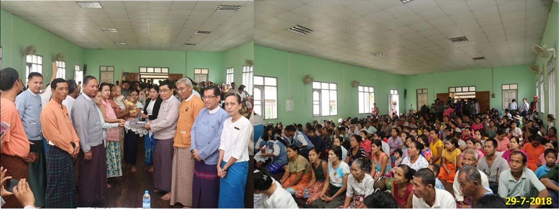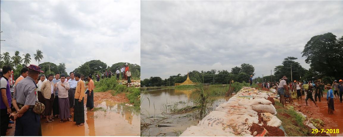 ပြည်ထောင်စုဝန်ကြီးနှင့်အဖွဲ့သည် ဇူလိုင်(၂၉)ရက်နေ့ နံနက်တွင် ပဲခူးတိုင်းဒေသကြီး၊ ကျောက်တံခါးမြို့နယ်၊ ပဲနွယ်ကုန်းမြို့၊ကွင်းချောင်းဝကျေးရွာ၊ ဆေးချောင်းဝဘုန်းတော်ကြီးကျောင်း တွင် ရောက်ရှိနေသော ရေဘေးရှောင်ပြည်သူများအား တွေ့ဆုံ၍ အားပေးစကားပြောကြားရာတွင် ရာသီဥတုပြောင်းလဲမှုများကြောင့် သဘာဝဘေးအန္တရာယ်များသည် ပိုမိုပြင်းထန်လာပါကြောင်း၊ အခုလိုယာယီစခန်းများသို့ ခေတ္တရောက်ရှိနေစဉ် ပြည်ထောင်စုအစိုးရက တိုက်ရိုက်လာ၍ ထောက်ပံ့ခြင်းဖြစ်ကြောင်း၊ တိုင်းဒေသကြီးအစိုးရအဖွဲ့နှင့် ပြည်သူလူထုများကလည်း ပူးပေါင်းကူညီ နေကြသည်ကိုသိရှိရပါကြောင်း၊ ယခုလိုထောက်ပံ့မှုသည် ပြည်သူ့ဘဏ္ဍာကိုသုံးစွဲဆောင်ရွက်ခြင်း ဖြစ်ကြောင်း၊ ပြည်သူ့ဘဏ္ဍာများ ပြည်သူများထံလိုအပ်သောအချိန်တွင် လိုအပ်သူများထံ အချိန်မီ လေလွင့်မှုမရှိဘဲ ရောက်ရှိအောင်ဆောင်ရွက်ခြင်းဖြစ်ကြောင်း ပြောကြားခဲ့ပြီး ဆန်ရိက္ခာဖိုးများ၊ ကိုယ်ဝန်ဆောင်များနှင့် မွေးကင်းစ ကလေးများအတွက် စုစုပေါင်းထောက်ပံ့ပေးငွေ ကျပ်သိန်း (၁၁၀)ကျော်အား ပေးအပ်ခဲ့ပါသည်။