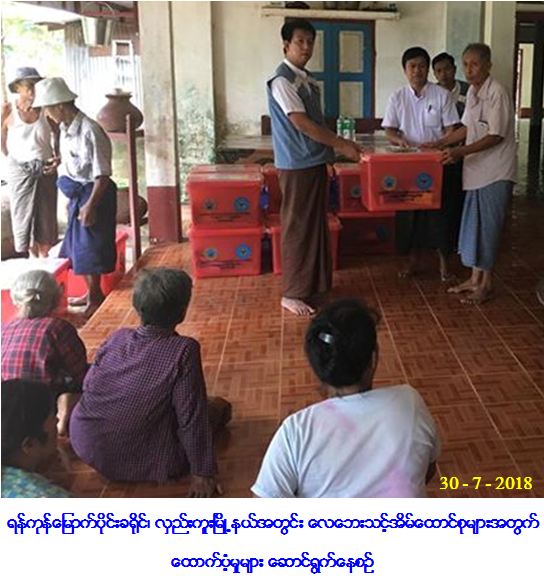 လူမှုဝန်ထမ်း၊ ကယ်ဆယ်ရေးနှင့် ပြန်လည်နေရာချထားရေးဝန်ကြီးဌာန၊ ဘေးအန္တရာယ်ဆိုင်ရာ စီမံခန့်ခွဲမှုဦးစီးဌာန၊ ရန်ကုန်တိုင်းဒေသကြီးဦးစီးမှူးရုံးမှ တာဝန်ရှိသူများသည် ရန်ကုန်တိုင်း ဒေသကြီး၊ လှည်ကူးမြို့နယ်၊ နန္တိကျေးရွာအုပ်စု၊ နန္တကျေးရွာနှင့် ညောင်တုန်းကျေးရွာတို့၌ (၂၆-၇-၂၀၁၈) ရက်နေ့တွင် လေဆင် နှာမောင်း တိုက်ခတ်မှုကြောင့် ဘေးသင့်ခဲ့သော ပြိုကျပျက်စီးနေအိမ် (၄) လုံးနှင့် အမိုးလန်နေအိမ် (၁၆) လုံး၊ အိမ်ထောင်စု (၂၀) စုမှ လူဦးရေ (၇၃) ဦးတို့အတွက် အိမ်ဆောက်ပစ္စည်းဖိုးငွေ ကျပ် (၂,၀၀၀,၀၀၀ိ/-)၊ ဆန်ရိက္ခာဖိုးငွေ (၇) ရက်စာ (၁၅၃,၃၀၀ိ/-) ကျပ်နှင့် ကယ်ဆယ်ရေးပစ္စည်း (၁၁) မျိုး (၂၀) အိမ်ထောင်စာ တို့အား (၃၀-၇-၂၀၁၈) ရက်နေ့တွင် ညောင်ကုန်းကျေးရွာ ဘုန်းတော်ကြီးကျောင်း၌ ဘေးသင့်ပြည်သူများ လက်ဝယ်သို့ မြို့နယ်အုပ်ချုပ် ရေးအဖွဲ့များနှင့်အတူ ထောက်ပံ့ပေးအပ်ခဲ့ကြောင်း သတင်းရရှိပါသည်။