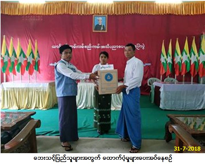 လူမှုဝန်ထမ်း၊ ကယ်ဆယ်ရေးနှင့် ပြန်လည်နေရာချထားရေးဝန်ကြီးဌာန၊ ဘေးအန္တရာယ်ဆိုင်ရာစီမံခန့်ခွဲမှုဦးစီးဌာန၊ သရက်ခရိုင်ဦးစီးမှူးရုံးမှ တာဝန်ရှိသူများသည် ကံမမြို့နယ်၊ သမ္ဘရာကျေးရွာအုပ်စု၊ သမ္ဘရာကျေးရွာတွင် (၂၉.၇.၂၀၁၈)ရက်နေ့တွင် (ဝရး၀၀)နာရီမှ (၀၉း၁၅)နာရီ အချိန်ထိ မင်းတုန်းချောင်းရေတိုက်စားမှုကြောင့် ဘေးကျရောက်နိုင်သည့် နေအိမ်(၉)လုံးအား ကြိုတင်ဖျက်သိမ်းပြောင်းရွှေ့ခဲ့ပြီး အိမ်ထောင်စု (၉)စု၊ လူဦးရေစုစုပေါင်း(၃၁)ဦး ဘေးသင့်ခဲ့ရာ ဘေးသင့်လူဦးရေ(၃၁)ဦးအတွက် ဆန်ရိက္ခာဖိုး(၇)ရက်စာ (၆၅,၁၀၀ိ/-)နှင့် နေအိမ်(၉)လုံး အတွက် အိမ်ဆောက်ပစ္စည်းဖိုး (၉၀၀,၀၀၀ိ/-)ကျပ်၊ ရန်ပုံငွေစုစုပေါင်း (၉၆၅,၁၀၀ိ/-) နှင့် ကယ်ဆယ်ရေးပစ္စည်း(၉)မျိုး (၉)အိမ်ထာင်စာတို့ အား (၃၁.၇.၂၀၁၈)ရက်နေ့တွင် အထွေထွေအုပ်ချုပ်ရေးဦးစီးဌာနမှ တာဝန်ရှိသူများရှေ့မှောက်တွင် သက်ဆိုင်ရာကျေးရွာအုပ်ချုပ်ရေးမှူး လက်ဝယ်သို့ သွားရောက်ထောက်ပံ့ပေးအပ်ခဲ့ကြောင်း သတင်းရရှိပါသည်။