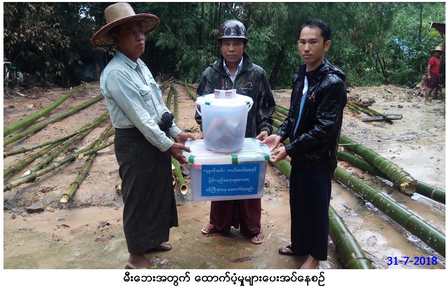 လူမှုဝန်ထမ်း၊ ကယ်ဆယ်ရေးနှင့်ပြန်လည်နေရာချထားရေးဝန်ကြီးဌာန၊ ဘေးအန္တရာယ်ဆိုင်ရာစီမံခန့်ခွဲမှုဦးစီးဌာန၊ ဧရာဝတီတိုင်းဒေသကြီးဦးစီး မှူးရုံးမှ တာဝန်ရှိသူများသည် ငပုတောမြို့နယ်၊ အနောက်ပိုင်းရပ်ကွက်၊ စဉ့်အိုးဘိုလမ်းတွင် (၃၀-၇-၂၀၁၈)ရက်နေ့၌ ဖြစ်ပွားခဲ့သော မီးဘေးကြောင့် မီးလောင်ကျွမ်းပျက်စီးခဲ့သည့် နေအိမ်(၁)လုံး၊ အိမ်ထောင်စု (၁)စုမှ လူဦးရေ (၃)ဦးအတွက် Unicef Family Kits (၁)ပုံး (၈၈,၀၀၀ိ/-)ကျပ်၊ အိမ်ဆောက်ပစ္စည်းဖိုး ရန်ပုံငွေ (၁၀၀,၀၀၀ိ/-)၊ ဆန်ရိက္ခာ (၇)ရက်စာ ရန်ပုံငွေ (၆၃၀၀ိ/-)ကျပ်၊ စုစုပေါင်းရန်ပုံငွေ (၁၀၆,၃၀၀ိ/-) ကျပ်တို့အား (၃၁-၇-၂၀၁၈)ရက်နေ့ (၁၅း၃၀)နာရီအချိန်တွင် ဘေးသင့်ပြည်သူများ လက်ဝယ်အရောက် ကွင်းဆင်းထောက်ပံ့ပေးအပ်ခဲ့ ကြောင်း သတင်းရရှိပါသည်။