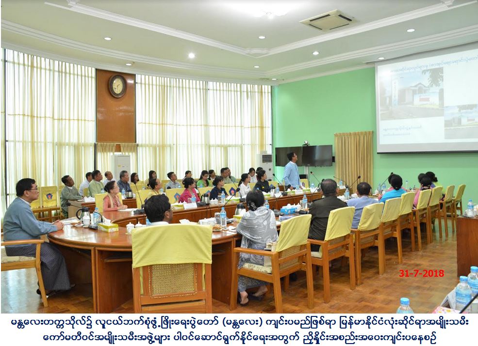 ၂၀၁၈ ခုနှစ်၊ သြဂုတ်လ (၁၁)ရက်နေ့မှ (၁၃)၂၀၁၈ ခုနှစ်၊ သြဂုတ်လ (၁၁)ရက်နေ့မှ (၁၃)ရက် နေ့အထိ မန္တလေးတက္ကသိုလ်၌ လူငယ်ဘက်စုံဖွံ့ဖြိုးရေးပွဲတော် (မန္တလေး) ကျင်းပမည်ဖြစ်ရာ မြန်မာနိုင်ငံလုံးဆိုင်ရာအမျိုးသမီး ကော်မတီဝင်အမျိုးသမီးအဖွဲ့များ ပါဝင်ဆောင်ရွက်နိုင်ရေးအတွက် ညှိနှိုင်းအစည်းအဝေးကို လူမှုဝန်ထမ်း၊ ကယ်ဆယ် ရေးနှင့် ပြန်လည်နေရာချထားရေးဝန်ကြီးဌာန၊ အစည်းအဝေးခန်းမ၌ ယနေ့၊ နေ့လည် (၁၃း၀၀) နာရီက ကျင်းပပြုလုပ်ခဲ့ပါသည်။ အစည်းအဝေးတွင် လူမှုဝန်ထမ်း၊ ကယ်ဆယ်ရေးနှင့် ပြန်လည်နေရာချထားရေးဝန်ကြီး ဌာန၊ ပြည်ထောင်စုဝန်ကြီးက ပြောကြားရာတွင် လူငယ်ဘက်စုံဖွံ့ဖြိုးရေးပွဲတော်ကို မန္တလေး တိုင်း ဒေသကြီးတွင် စည်ကားသိုက်မြိုက်စွာ ကျင်းပမည်ဖြစ်ရာ မြန်မာနိုင်ငံလုံးဆိုင်ရာ အမျိုးသမီး ကော်မတီ အဖွဲ့ဝင်များက ပူးပေါင်းဆောင်ရွက် မည်ဖြစ်ပါကြောင်း၊ မြန်မာနိုင်ငံရှိ လူငယ်များအား ဘက်စုံ ဖွံ့ဖြိုးတိုးတက်သော လူငယ်များဖြစ်လာစေရန် လူမှုဝန်ထမ်း၊ ကယ်ဆယ်ရေးနှင့် ပြန်လည်နေရာချထားရေးဝန်ကြီးဌာန၊ ကျန်းမာရေး နှင့် အားကစားဝန်ကြီးဌာန၊ ပညာရေး ဝန်ကြီးဌာနတို့မှ ဦးဆောင်၍ ဆက်စပ် ဝန်ကြီးဌာနများ၊ လူငယ်ကိုယ်စားလှယ်များ၊ အမျိုးသမီး ကိုယ်စားလှယ်များ၊ မသန်စွမ်း လူငယ်ကိုယ်စားလှယ်များ၊ ကုလသမဂ္ဂအဖွဲ့အစည်း များ၊ ပြည်တွင်း၊ ပြည်ပမှ အစိုးရ မဟုတ်သော အဖွဲ့အစည်းများနှင့် ပူးပေါင်း၍ လူငယ်ရေးရာမူဝါဒကို ရေးဆွဲပြဌာန်းနိုင်ခဲ့ပါကြောင်း၊ အဆိုပါလူငယ်ရေးရာမူဝါဒအရ အမျိုးသမီး ငယ်ရွယ်များ၏ ရပ်တည်မှု၊ ဖွံ့ဖြိုးတိုးတက်မှုနှင့် ၎င်းတို့အားအကာအကွယ်ပေးနိုင်မှုတို့အတွက် အမျိုးသမီးများ နှင့် မူးယစ်ဆေးဝါး၊ အလုပ်အကိုင်အခွင့်အလမ်း၊ ငြိမ်းချမ်းရေး ၊ မျိုးဆက်ပွားနှင့် ကျန်းမာရေး ကဏ္ဍများနှင့် ပတ်သက်၍ ပြခန်းများ၊ ပြဇာတ်များ အပါ အဝင်အမျိုးသမီးငယ်ရွယ်များ မိမိဘဝ တန်ဖိုးထား နိုင်ရေးဆွေးနွေးပွဲများ၊ အမေးအဖြေကဏ္ဍများ ပါဝင်ဆောင်ရွက်ရန်ညှိနှိုင်းခဲ့ကြပါသည်။