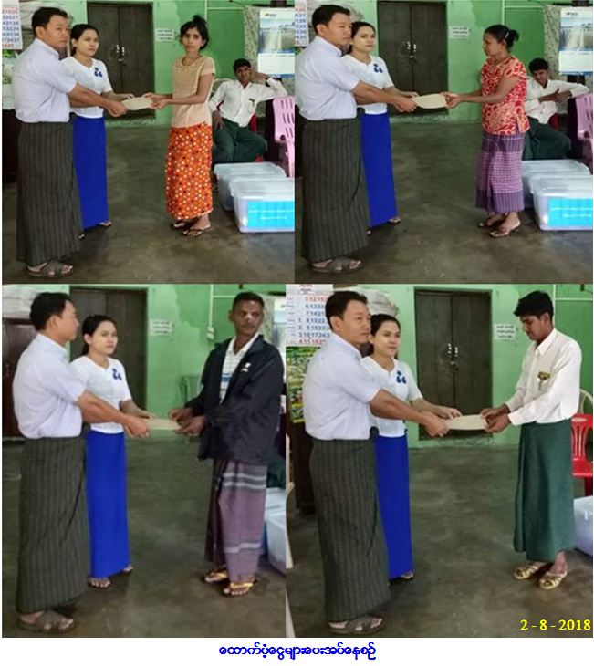 လူမှုဝန်ထမ်း၊ ကယ်ဆယ်ရေးနှင့် ပြန်လည်နေရာချထားရေးဝန်ကြီးဌာန၊ ဘေးအန္တရာယ်ဆိုင်ရာစီမံခန့်ခွဲမှု ဦးစီးဌာန၊ မြိတ်ခရိုင်ဦးစီးမှူးရုံးမှ တာဝန်ရှိသူများသည် မြိတ်ခရိုင်၊ မြိတ်မြို့နယ်၊ အထက်ကန်ဖျားရပ်ကွက်၌ (၁-၈-၂၀၁၈) ရက်နေ့တွင် ဖြစ်ပွားခဲ့သော မြေပြိုဘေးကြောင့် ဘေးသင့်အိမ်ခြေ (၁) လုံး၊ အိမ်ထောင်စု (၃) စုမှ လူဦးရေ (၁၂) ဦးအတွက် အိမ်ဆောက်ပစ္စည်းဖိုးငွေ (၁၀၀,၀၀၀ိ/-) ကျပ်၊ ကယ်ဆယ်ရေးပစ္စည်း (၁၅) မျိုး (၃) အိမ်ထောင်စာ၊ ဆန်ရိက္ခာဖိုးငွေ (၇) ရက်စာ (၂၅,၂၀၀ိ/-) ကျပ်နှင့် ဒဏ်ရာရလူနာ (၂) ဦးအတွက် ထောက်ပံ့ငွေ (၁၀၀,၀၀၀ိ/-) ကျပ်တို့အား (၂-၈-၂၀၁၈) ရက်နေ့၊ (၁၅း၄၀) နာရီအချိန်တွင် သွားရောက် ထောက်ပံ့ပေးအပ်ခဲ့ကြောင်း သတင်းရရှိပါသည်။