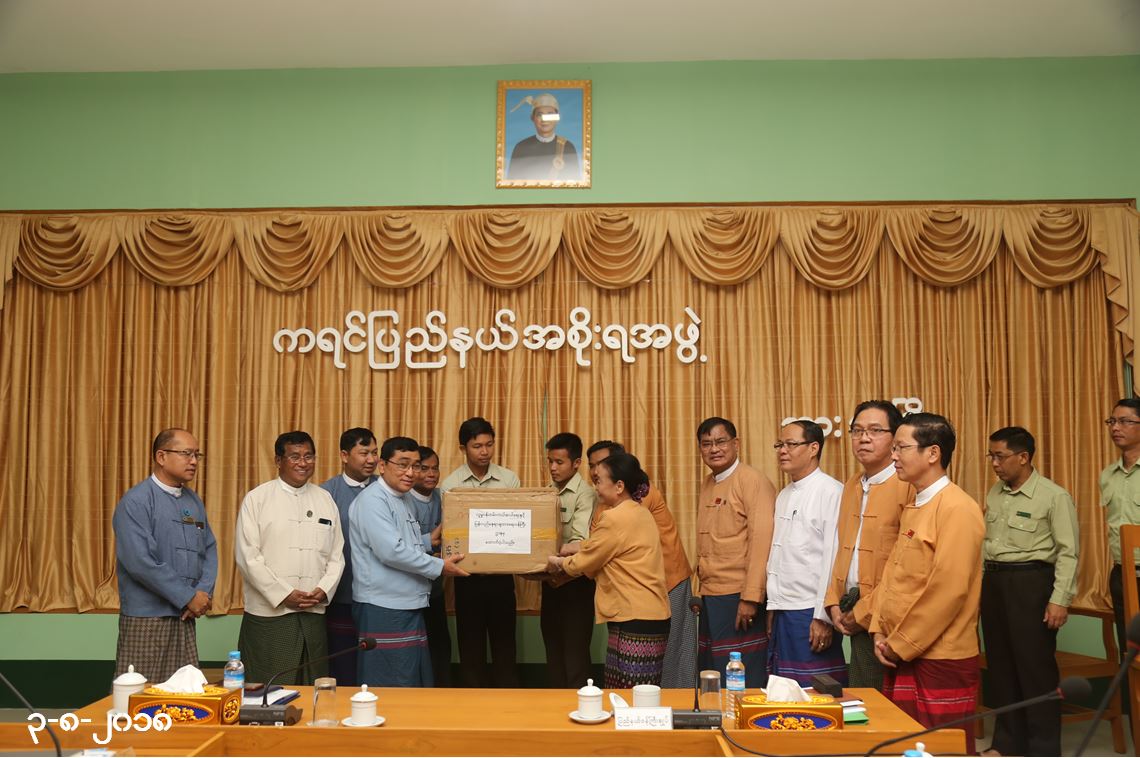 အမျိုးသားသဘာဝဘေးအန္တရာယ်ဆိုင်ရာစီမံခန့်ခွဲမှုကော်မတီ၊ ဒုတိယဥက္ကဌ၊ လူမှုဝန်ထမ်း၊ ကယ်ဆယ်ရေးနှင့် ပြန်လည်နေရာချထားရေးဝန်ကြီးဌာန၊ ပြည်ထောင်စုဝန်ကြီး ဒေါက်တာဝင်းမြတ်အေးနှင့်အဖွဲ့သည် ကရင်ပြည်နယ်အတွင်းရှိ ရေဘေးသင့်ပြည်သူများအား ကူညီထောက်ပံ့မှုများ ဆက်လက်ဆောင်ရွက်ပေးရန်နှင့် ပြန်လည်ထူထောင်ရေးလုပ်ငန်းအမြန်စတင်နိုင်ရေးအတွက် ယနေ့နံနက်ပိုင်းက ကရင်ပြည်နယ်အစိုးရအဖွဲ့ရုံးအစည်းအဝေးခန်းမတွင် ညှိနှိုင်းမှုအစည်းအဝေးကို ကျင်းပပြုလုပ်ခဲ့ပါ သည်။
