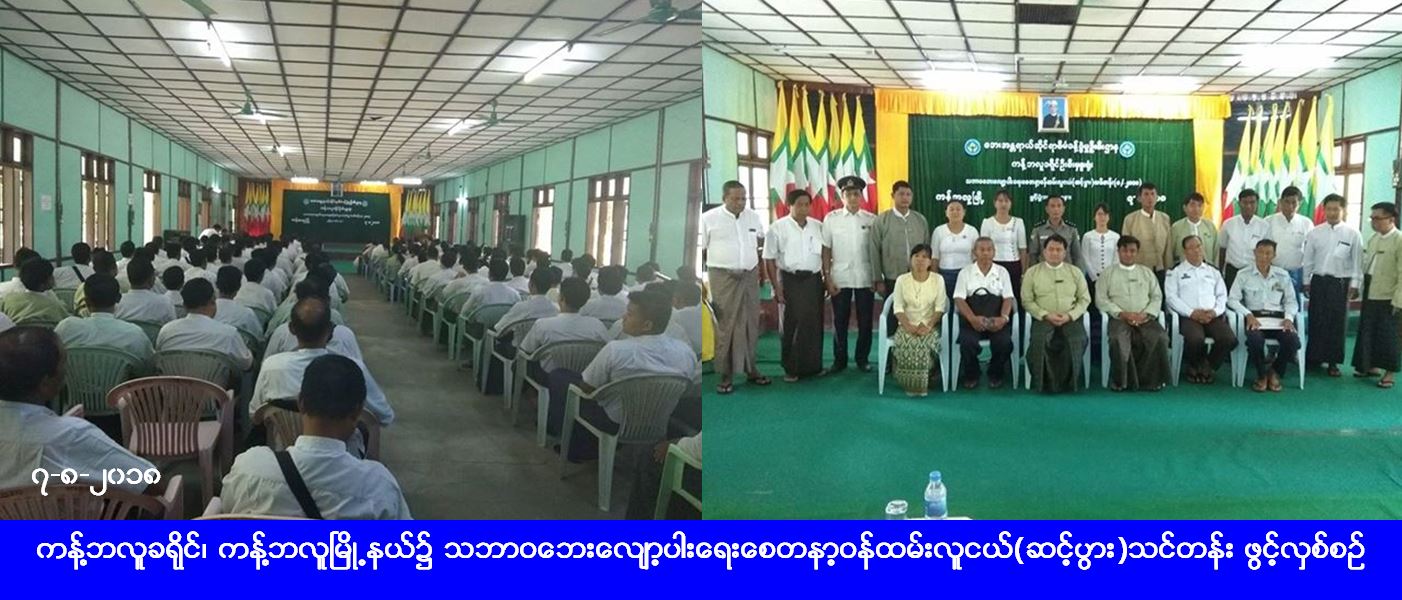 လူမှုဝန်ထမ်း၊ ကယ်ဆယ်ရေးနှင့် ပြန်လည်နေရာချထားရေးဝန်ကြီးဌာန၊ ဘေးအန္တရာယ်ဆိုင်ရာစီမံခန့်ခွဲမှုဦးစီးဌာန၊ ကန့်ဘလူခရိုင်ဦးစီးမှူးရုံးနှင့် စစ်ကိုင်းတိုင်းဒေသကြီးဦးစီးမှူးရုံးမှ တာဝန်ရှိသူများသည် (၇-၈-၂၀၁၈) ရက်နေ့၊ (၀၉း၀၀) နာရီအချိန်တွင် သဘာဝဘေးလျော့ပါးရေးစေတနာ့ဝန်ထမ်းလူငယ်(ဆင့်ပွား)သင်တန်းအား ကန့်ဘလူခရိုင်၊ ကန့်ဘလူမြို့နယ်၊ အထွေထွေအုပ်ချုပ်ရေးဦးစီးဌာနအစည်းအဝေးခန်းမ၌ ဖွင့်လှစ်ခဲ့ရာ ဖွင့်ပွဲတက်ရောက်သူ (၂၂၀) ဦးနှင့် သင်တန်းသား/သူ (၃၀) ဦးတက်ရောက်ခဲ့ပါသည်။ အဆိုပါသင်တန်းအား (၇-၈-၂၀၁၈) မှ (၉-၈-၂၀၁၈) ထိ (၃) ရက်ကြာဖွင့်လှစ်မည်ဖြစ်ကြောင်း သိရှိရပါသည်။