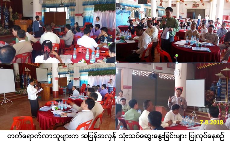 လူမှုဝန်ထမ်း၊ ကယ်ဆယ်ရေးနှင့် ပြန်လည်နေရာချထားရေးဝန်ကြီးဌာနနှင့် ရှမ်းပြည်နယ်အစိုးရအဖွဲ့တို့ ပူးပေါင်း ကျင်းပသည့် လူမှုကာကွယ်စောင့်ရှောက်ရေးနှင့် သဘာဝဘေးလျော့ပါးရေး အလုပ်ရုံဆွေးနွေးပွဲအခမ်းအနားကို ကျိုင်းတုံမြို့၌ (၇-၈-၂၀၁၈) ရက်နေ့တွင် (၀၉း၀၀) အချိန်မှ (၁၂း၃၀) အချိန်ထိ ကျင်းပပြုလုပ်ခဲ့ရာ ဗမာတိုင်းရင်း သားဝန်ကြီးက အဖွင့်အမှာစကားပြောကြားခဲ့ပြီး ဘေးအန္တရာယ်ဆိုင်ရာစီမံခန့်ခွဲမှုဦးစီးဌာန၏ ပြည်နယ်မှူးများက ဦးဆောင်ဟောပြောဆွေးနွေးခြင်းများပြုလုပ်ခဲ့ပါသည်။