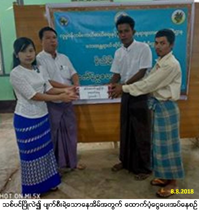 မြေပျော့ပြီး သစ်ပင်ပိ၍ တစ်စိတ်တစ်ပိုင်းပျက်စီးခဲ့သည့် နေအိမ် (၁) လုံးအတွက် အိမ်ဆောက်ပစ္စည်းဖိုး ထောက်ပံ့ငွေ (၃၀,၀၀၀/-) ကျပ်အား (၈-၈-၂၀၁၈) ရက်နေ့၊ (၁၀း၀၀) နာရီအချိန်တွင် မိုးညိုမြို့နယ်အထွေထွေ အုပ်ချုပ်ရေးဦးစီးဌာနရုံး၌ မြို့နယ်အထွေထွေအုပ်ချုပ်ရေးဦးစီးဌာနရုံးမှတာဝန်ရှိသူများ၊ သက်ဆိုင်ရာကျေးရွာ အုပ်ချုပ်ရေးမှူးနှင့်အတူ ပြည်သူ့လက်ဝယ်အရောက် သွားရောက်ထောက်ပံ့ပေးအပ်ခဲ့ကြောင်း သတင်းရရှိပါသည်။
