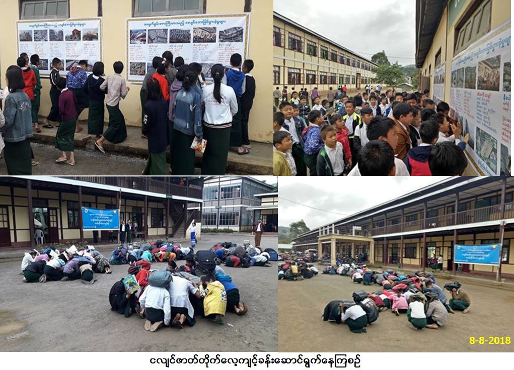 လူမှုဝန်ထမ်း၊ ကယ်ဆယ်ရေးနှင့်ပြန်လည်နေရာချထားရေးဝန်ကြီးဌာန၊ ဘေးအန္တရာယ်ဆိုင်ရာစီမံခန့်ခွဲမှုဦးစီးဌာန၊ ရှမ်းပြည်နယ်ဦးစီးမှူးရုံးမှ တာဝန်ရှိ သူများသည် (၉.၈.၂၀၁၈)ရက်နေ့ နံနက်ပိုင်းတွင် ငလျင်ဘေးအသိပညာပေးဟောပြောပွဲနှင့် ငလျင်ဇာတ်တိုက်လေ့ကျင့်ခန်းအား ကလောမြို့ အထက(၁)၌ ကျင်းပပြုလုပ်ရာ ငလျင်ဘေးနှင့်ပတ်သက်သည့် ဗီနိုင်းပိုစတာများခင်းကျင်းပြသခြင်း၊ ငလျင်ဘေးအသိပညာပေးဟောပြောပွဲ ပြုလုပ်ခြင်း၊ ကျောင်းသား/ သူများအား ငလျင်ဆိုင်ရာဗဟုသုတ မေးခွန်းများမေးမြန်းပြီး လက်ဆောင်ပစ္စည်းများပေးခြင်း၊ ငလျင်ဇာတ်တိုက် လေ့ကျင့်ခန်းဗွီဒီယိုဖိုင်ပြသခြင်းနှင့် ငလျင်လှုပ်ခတ်နေစဉ် ကွင်းပြင်သို့ ပြေးထွက်နေရာယူခြင်းနှင့် စာသင်ခန်းအတွင်း နေရာယူခြင်းအစရှိသည့် ဇာတ်တိုက်လေ့ကျင့်မှုများပြုလုပ်ခဲ့ပြီး ဆရာ/ဆရာမနှင့် ကျောင်းသား/သူ (၇၀၀)ဦးခန့် ပါဝင်လေ့ကျင့်ဆောင်ရွက်ခဲ့ကြောင်း သတင်းရရှိပါ သည်။