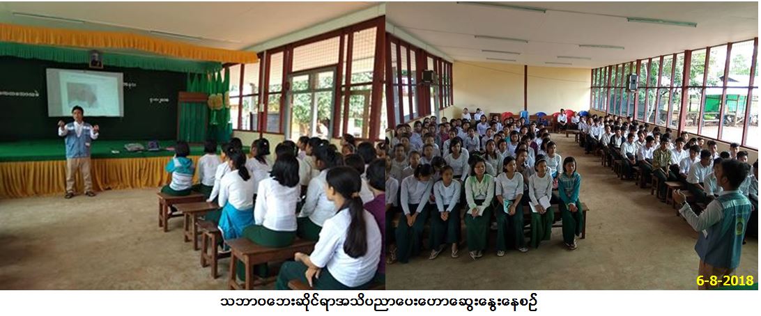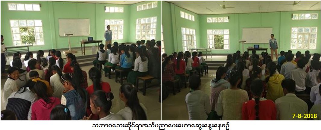 လူမှုဝန်ထမ်း၊ ကယ်ဆယ်ရေးနှင့်ပြန်လည်နေရာချထားရေးဝန်ကြီးဌာန၊ ဘေးအန္တရာယ်ဆိုင်ရာစီမံခန့်ခွဲမှုဦးစီးဌာန၊ ကယားပြည်နယ်ဦးစီးမှူးရုံးမှ တာဝန်ရှိသူများသည် (၆.၈.၂၀၁၈)ရက်နေ့တွင် ဘောလခဲခရိုင်၊ ဘောလခဲမြို့နယ်၊ အ.ထ.က(ဘောလခဲ)ကျောင်း၊ ကျောင်းသား/ကျောင်းသူ (၂၀၀)ဦးအားလည်းကောင်း၊ (၇.၈.၂၀၁၈)ရက်နေ့တွင် ဘောလခဲမြို့နယ်၊ အ.ထ.က(ရွာသစ်)ကျောင်း၊ ကျောင်းသား/ကျောင်းသူ(၂၀၀) ဦးအားလည်းကောင်း သဘာဝဘေးဆိုင်ရာအသိပညာပေးဟောပြောခဲ့ပြီး၊ တက်ရောက်လာသူများကို လက်ကမ်းစာစောင်များဝေငှခဲ့ကြောင်း သတင်းရရှိပါသည်။