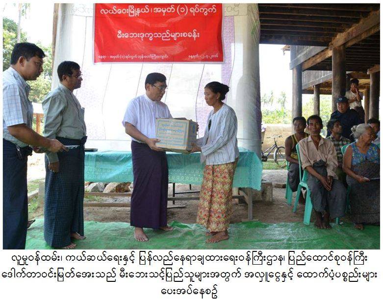 လူမှုဝန်ထမ်း၊ ကယ်ဆယ်ရေးနှင့် ပြန်လည်နေရာချထားရေးဝန်ကြီးဌာန၊ ပြည်ထောင်စုဝန်ကြီးဒေါက်တာဝင်းမြတ်အေးသည် (၃-၄-၂၀၁၆) ရက်နေ့ (၁၂:ဝ၀) နာရီတွင် မီးဘေးသင့်ပြည်သူများအတွက် ကယ်ဆယ်ရေးစခန်းဖွင့်လှစ်ထားရှိသည့် လယ်ဝေးမြို့ အမှတ် (၁) ရပ်ကွက်ရှိ မြွေရိုးကြီးကျောင်းတိုက်သို့သွားရောက်၍ ဝန်ကြီးဌာန မှ ထောက်ပံ့ပေးအပ်သော တန်ဖိုးကျပ် (၁၅၄၄၆၂) ရှိကယ်ဆယ်ရေးပစ္စည်း (၉) မျိုး၊ အိမ်ဆောက်ပစ္စည်းတန်ဖိုးငွေကျပ် (၄၅၀၀၀၀) နှင့် ဆန်ရိက္ခာဖိုးထောက်ပံ့ငွေကျပ် (၆၃၀၀၀) အားထောက်ပံ့ပေးအပ်ခဲ့ပြီး မီးဘေးသင့်ပြည်သူများနှင့်ရင်းရင်းနှီးနှီးတွေ့ဆုံ၍ အားပေးစကားပြောကြား ခဲ့ကြောင်း သိရှိရပါသည်။