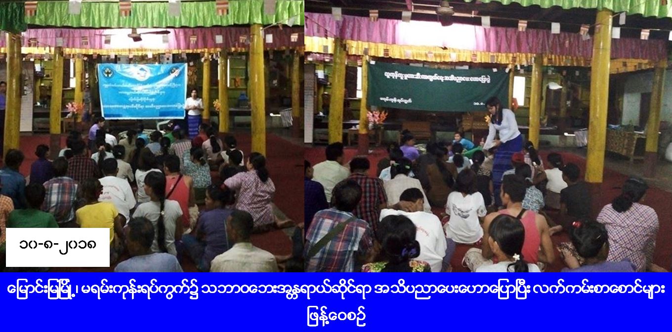 လူမှုဝန်ထမ်း၊ ကယ်ဆယ်ရေးနှင့် ပြန်လည်နေရာချထားရေးဝန်ကြီးဌာန၊ ဘေးအန္တရာယ်ဆိုင်ရာစီမံခန့်ခွဲမှုဦးစီးဌာန၊ မြောင်းမြခရိုင်ဦးစီးမှူးရုံးမှ တာဝန်ရှိသူများသည် (၁၀-၈-၂၀၁၈) ရက်နေ့၊ နေ့လည် (၁၃း၀၀) နာရီမှ (၁၄း၀၀) နာရီအချိန်ထိ မြောင်းမြမြို့၊ မရမ်းကုန်းရပ်ကွက်၌ သဘာဝဘေးအန္တရာယ်ဆိုင်ရာ အသိပညာပေးဟောပြောပွဲ ပြုလုပ်ခဲ့ရာ ပြည်သူစုစုပေါင်း (၁၂၀) ဦးတို့ တက်ရောက်ခဲ့ပါသည်။ အဆိုပါဟောပြောပွဲသို့ တက်ရောက်ခဲ့သူများထံ လက်ကမ်းစာစောင်များ ဖြန့်ဝေပေးခဲ့ကြောင်း သိရှိရပါသည်။