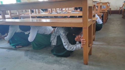 လူမှုဝန်ထမ်း၊ ကယ်ဆယ်ရေးနှင့်ပြန်လည်နေရာချထားရေးဝန်ကြီးဌာန၊ ဘေးအန္တရာယ်ဆိုင်ရာစီမံခန့်ခွဲမှုဦးစီးဌာန၊ ပြည်ထောင်စုနယ်မြေ၊ နေပြည်တော် တိုင်းဦးစီးမှူးရုံးမှ တာဝန်ရှိသူများသည် (၁၀-၈-၂၀၁၈)ရက်နေ့တွင် (၁၀း၀၀)မှ (၁၂း၃၀)နာရီအချိန်ထိ ပျဉ်းမနားမြို့နယ်၊ (အ.ထ.က – ၅) ကျောင်းရှိ ကျောင်းသား/သူ (၁၅၀)ဦး၊ မြို့နယ်အထွေထွေအုပ်ချုပ်ရေးဦးစီးဌာန၊ မီးသတ်ဦးစီးဌာန၊ ကျန်းမာရေးဦးစီးဌာနတို့နှင့် ပူးပေါင်း၍ ငလျင်ဘေးအန္တရာယ်ဆိုင်ရာအသိပညာများဆွေးနွေးဟောပြောခြင်းနှင့် သဏ္ဌာန်တူဇာတ်တိုက်လေ့ကျင့်ခန်းဆောင်ရွက်ခဲ့ကြောင်း သတင်း ရရှိပါသည်။