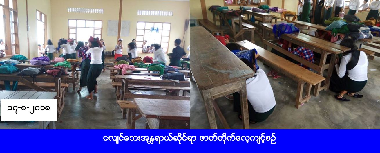 လူမှုဝန်ထမ်း၊ ကယ်ဆယ်ရေးနှင့် ပြန်လည်နေရာချထားရေးဝန်ကြီးဌာန၊ ဘေးအန္တရာယ်ဆိုင်ရာစီမံခန့်ခွဲမှုဦးစီးဌာန၊ နေပြည်တော်တိုင်းဦးစီးမှူးရုံးမှ တာဝန်ရှိသူများသည် ပျဉ်းမနားမြို့နယ် သဘာဝဘေးစီမံခန့်ခွဲမှုအဖွဲ့ဝင်များနှင့် ပူးပေါင်း၍ (၁၇-၈-၂၀၁၈) ရက်နေ့၊ (၁၀း၀၀) နာရီမှ (၁၂း၀၀) နာရီအချိန်ထိ ပျဉ်မနားမြို့နယ်၊ ဂဲကြီးသာစည်ကျေးရွာရှိ စာသင်ကျောင်း၌ ကျောင်းသား/သူ (၂၆၀) ဦးအား ငလျင်ဘေးအန္တရာယ်ဆိုင်ရာ အသိပညာများဆွေးနွေးဟောပြောခြင်းနှင့် သဏ္ဌာန်တူဇာတ်တိုက်လေ့ကျင့်မှုများ ဆောင်ရွက်ခဲ့ပြီး လက်ကမ်းစာစောင်များ ဖြန့်ဝေခဲ့ကြောင်း သိရှိရပါသည်။