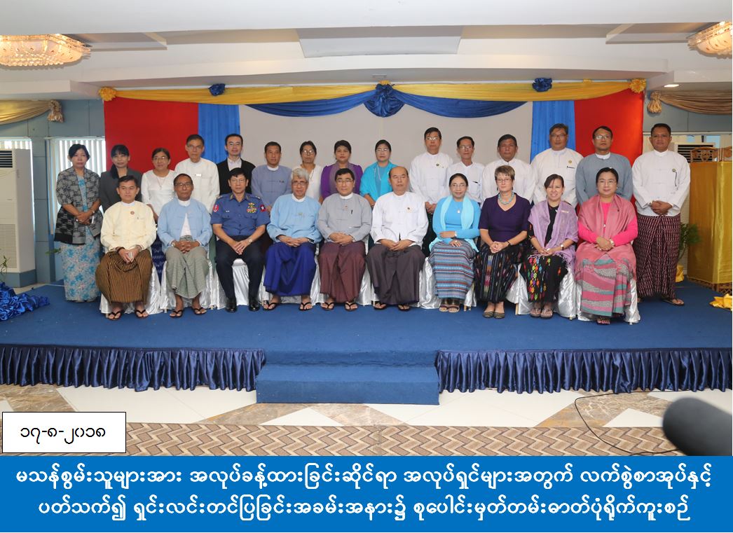 မြန်မာနိုင်ငံရှိ အလုပ်ရှင်များအတွက် မသန်စွမ်းသူများအား အလုပ်ခန့်ထားခြင်းဆိုင်ရာ လက်စွဲစာအုပ်ရှင်းလင်းတင်ပြခြင်း အခမ်းအနားကို နေပြည်တော် ဇမ္ဗူသီရိဟိုတယ်၌ (၁၇-၈-၂၀၁၈) ရက်နေ့၊ နံနက်(၀၉:၀၀)နာရီတွင်ကျင်းပသည်။