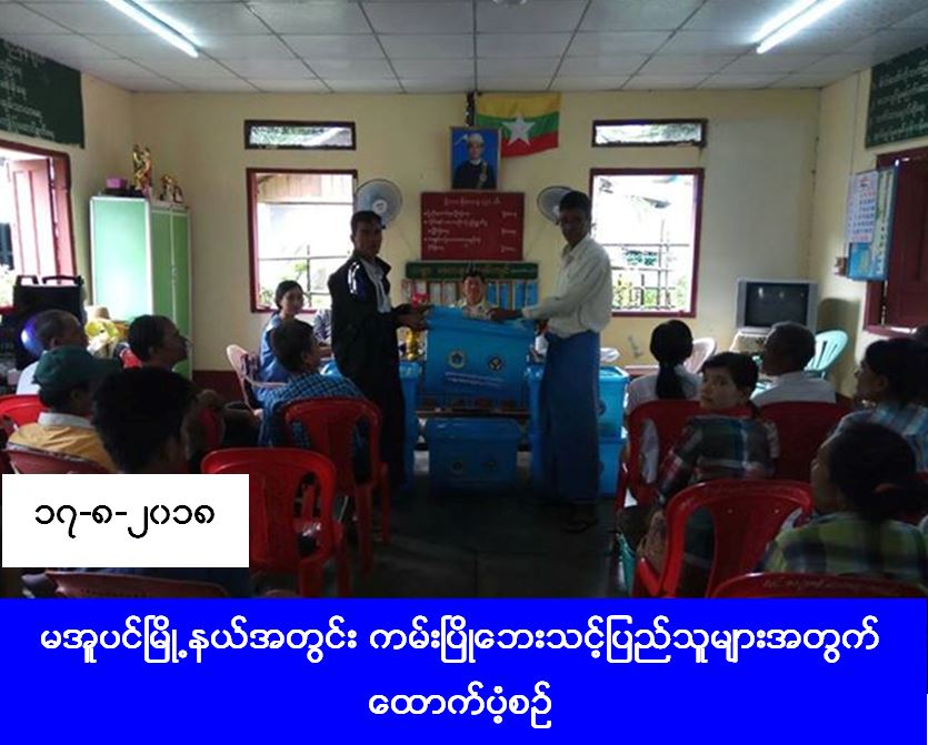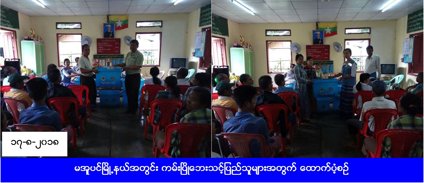 (၁၇-၈-၂၀၁၈) ရက်နေ့၊ (၀၉း၃၀) နာရီအချိန်တွင် မအူပင်မြို့နယ်၊ ထွေ/အုပ်ဦးစီးဌာနမှ တာဝန်ရှိသူများနှင့်အတူ ထောက်ပံ့ပေးအပ်ခဲ့ကြောင်း သိရှိရပါသည်။
