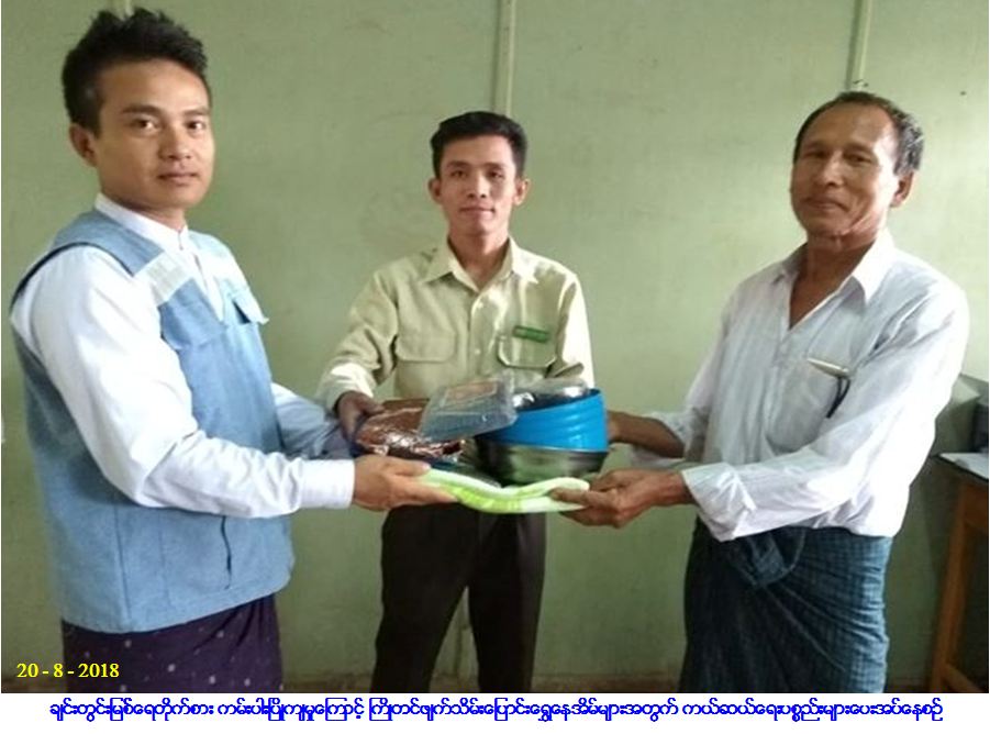 လူမှုဝန်ထမ်း၊ ကယ်ဆယ်ရေးနှင့် ပြန်လည်နေရာချထားရေးဝန်ကြီးဌာန၊ ဘေးအန္တရာယ်ဆိုင်ရာစီမံခန့်ခွဲမှုဦးစီးဌာန၊ ရေစကြိုမြို့နယ်ဦးစီးမှူးရုံးမှ တာဝန်ရှိသူများသည် ပခုက္ကူခရိုင်၊ ရေစကြိုမြို့နယ်၊ မိုးကွဲကျေးရွာအုပ်စု၊ ချင်းယားကျေးရွာ၌ (၂၀-၈-၂၀၁၈) ရက်နေ့ (၁၀း၁၅) နာရီအချိန်၌ ချင်းတွင်းမြစ်ရေတိုက်စား၍ ကမ်းပါးပြိုကျမှုကြောင့် ကြိုတင်ဖျက်သိမ်းပြောင်းရွှေ့မှုများ နေအိမ်(၂) လုံး၊ အိမ်ထောင်စု (၂) စု၊ လူဦးရေ (၈) ဦးတို့အတွက် ကယ်ဆယ်ရေးပစ္စည်း (၉) မျိုး၊ (၂) အိမ်ထောင်စာ၊ ဆန်ရိက္ခာဖိုးငွေ (၇) ရက်စာ (၁၆,၈၀၀/-) ကျပ်နှင့် အိမ်ဆောက်ပစ္စည်းဖိုးငွေ (၂၀၀,၀၀၀/- ) စုစုပေါင်း ထောက်ပံ့ငွေ (၂၁၆,၈၀၀/-) ကျပ်တို့အား (၂၀-၈-၂၀၁၈) ရက်နေ့တွင် ရေစကြိုမြို့နယ်အထွေထွေအုပ်ချုပ်ရေးဦးစီးဌာနရုံး၌ မြို့နယ်အထွေထွေအုပ်ချုပ်ရေးရုံးမှ တာဝန်ရှိသူများနှင့်အတူ မိုးကွဲကျေးရွာအုပ်ချုပ်ရေးမှူး လက်ဝယ်အရောက် ထောက်ပံ့ပေးအပ်ခဲ့ကြောင်း သတင်းရရှိပါသည်။