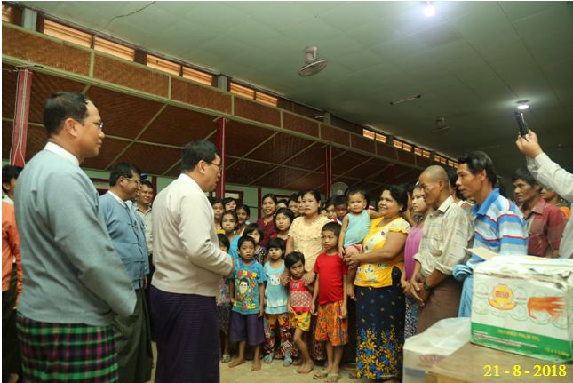 ဆက်လက်၍ချောင်းကြီးရပ်ကွက် ယာယီရေဘေးကယ်ဆယ်ရေးစခန်းသို့ ရောက်ရှိပြီး အားပေးစကား ပြောကြားကာ ဆန်၊ ဆီ၊ ခေါက်ဆွဲခြောက်များနှင့် ကလေးများအတွက် မုန့်များထောက်ပံ့ပေးခြင်း၊ ကျောင်းတိုက် အတွင်းဖွင့်လှစ်ထားသည့်ကလေးပျော်နေရာသို့ ကြည့်ရှုခဲ့ခြင်း၊ ကျောင်းတိုက်ဆရာတော်အားဖူးမျှော်ကြည်ညို၍ အလှူငွေ များပေးအပ်လှူဒါန်းခဲ့ပြီး၊ ကယ်ဆယ်ရေးစခန်းအဖြစ် အသုံးပြုနေရသည့် ချောင်းကြီ်းကျောင်းတိုက်အတွင်း (၅)ခန်းတွဲ သန့်စင်ခန်းဆောက်လုပ်ရန်အတွက် ထောက်ပံ့ငွေကျပ်(၂၀)သိန်းကို ပေးအပ်ခဲ့ရာကျောင်းအကျိုးတော် ဆောင်ကလက်ခံရယူခဲ့ပါသည်။
