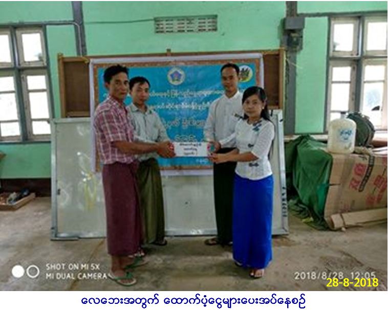 လူမှုဝန်ထမ်း၊ ကယ်ဆယ်ရေးနှင့် ပြန်လည်နေရာချထားရေးဝန်ကြီးဌာန၊ ဘေးအန္တရာယ်ဆိုင်ရာစီမံခန့်ခွဲမှုဦးစီးဌာန၊ မိုးညိုမြို့နယ်ဦးစီးမှူးရုံးမှ တာဝန်ရှိသူများသည် ပဲခူးတိုင်းဒေသကြီး၊ သာယာဝတီခရိုင်၊ မိုးညိုမြို့နယ်၊ သာယာကုန်းကျေးရွာအုပ်စု တောင်ဇင်းကျေးရွာတွင် (၂၀-၈- ၂၀၁၈) ရက်နေ့၌ ဖြစ်ပွားခဲ့သော လေဘေးမှ သစ်ပင်ပိ၍ တစ်စိတ်တစ်ပိုင်းပျက်စီးခဲ့သော နေအိမ်(၁)လုံးအတွက် အိမ်ဆောက်ပစ္စည်းဖိုး ထောက်ပံ့ငွေ (၅၅၀၀၀/-)ကျပ်အား (၂၈-၈-၂၀၁၈)ရက်နေ့ (၁၂း၀၀)နာရီအချိန်တွင် မိုးညိုမြို့နယ် အထွေထွေအုပ်ချုပ်ရေးဦးစီးဌာနရုံး၌ မိုးညိုမြို့နယ်အထွေထွေအုပ်ချုပ်ရေးဦးစီးဌာနမှ တာဝန်ရှိသူများ၊ သက်ဆိုင်ရာကျေးရွာအုပ် ချုပ်ရေးမှူးနှင့်အတူ ပြည်သူလက်ဝယ်အရောက် သွားရောက်ထောက်ပံ့ပေးအပ်ခဲ့ကြောင်း သတင်းရရှိပါသည်။