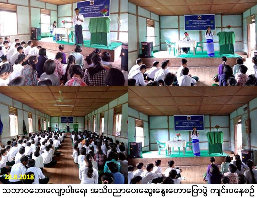 လူမှုဝန်ထမ်း၊ ကယ်ဆယ်ရေးနှင့် ပြန်လည်နေရာချထားရေးဝန်ကြီးဌာန၊ ဘေးအန္တရာယ်ဆိုင်ရာစီမံခန့်ခွဲမှုဦးစီးဌာန၊ ကသာခရိုင်ဦးစီးမှူးရုံးမှ တာဝန်ရှိသူများသည် (၂၈-၈-၂၀၁၈) ရက်နေ့တွင် အင်းတော်မြို့နယ်၊ နဘားကျေးရွာ၊ အ.ထ.က (ခွဲ) စာသင်ကျောင်း၌ သဘာဝဘေးလျော့ပါးရေး အသိပညာပေးဆွေးနွေးဟောပြောပွဲ ကျင်းပပြုလုပ် ခဲ့ရာ ကျောင်းသား/သူ စုစုပေါင်း (၂၀၀) ဦး တက်ရောက်ခဲ့ကြောင်းသတင်းရရှိပါသည်။