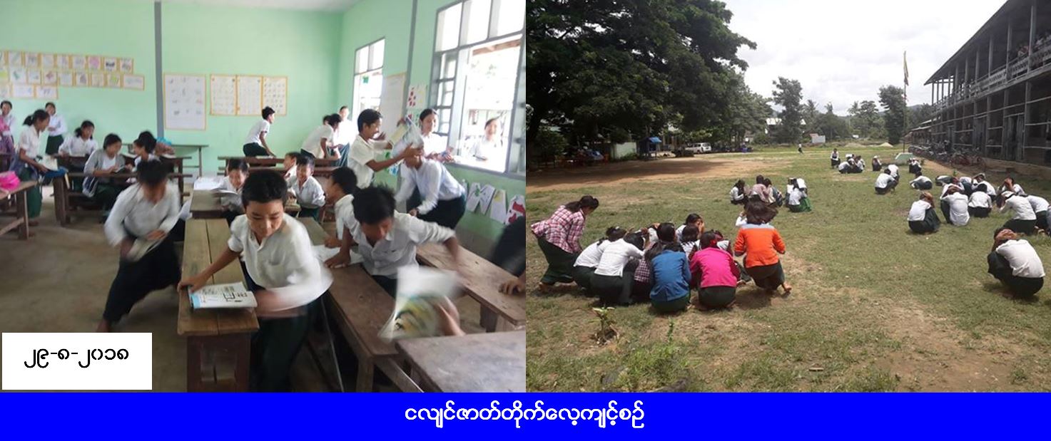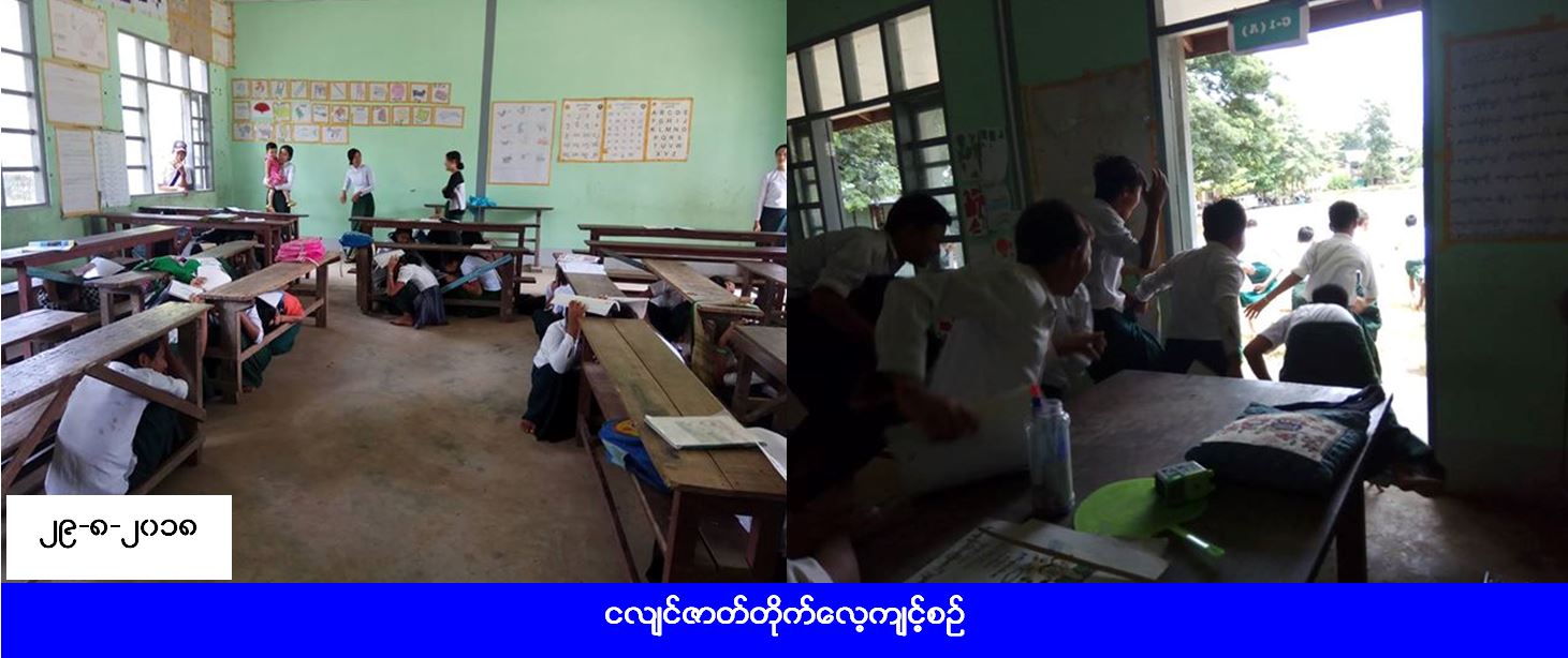 လူမှုဝန်ထမ်း၊ ကယ်ဆယ်ရေးနှင့် ပြန်လည်နေရာချထားရေးဝန်ကြီးဌာန၊ ဘေးအန္တရာယ်ဆိုင်ရာစီမံခန့်ခွဲမှုဦးစီးဌာန၊ ပြည်ထောင်စုနယ်မြေ နေပြည်တော်တိုင်းဦးစီးမှူးရုံးမှ တာဝန်ရှိသူများသည် (၂၉-၈-၂၀၁၈) ရက်နေ့၊ (၁၀း၀၀) နာရီမှ (၁၂း၀၀) နာရီအချိန်ထိ ပျဉ်မနားမြို့နယ်၊ ဇီးဖြူပင် အခြေခံပညာအလယ်တန်းကျောင်း၌ ကျောင်းသား/သူ (၂၀၀) ဦး၊ ပျဉ်းမနားမြို့နယ် သဘာဝဘေးစီမံခန့်ခွဲမှုအဖွဲ့ဝင်များနှင့်ပူးပေါင်း၍ ငလျင်ဘေးအန္တရာယ်ဆိုင်ရာအသိပညာများဆွေးနွေးဟောပြောခြင်းနှင့် ငလျင်ဇာတ်တိုက်လေ့ကျင့်မှုများ ဆောင်ရွက်ခဲ့ပြီး လက်ကမ်းစာစောင်များဖြန့်ဝေခဲ့ကြောင်း သိရှိရပါသည်။