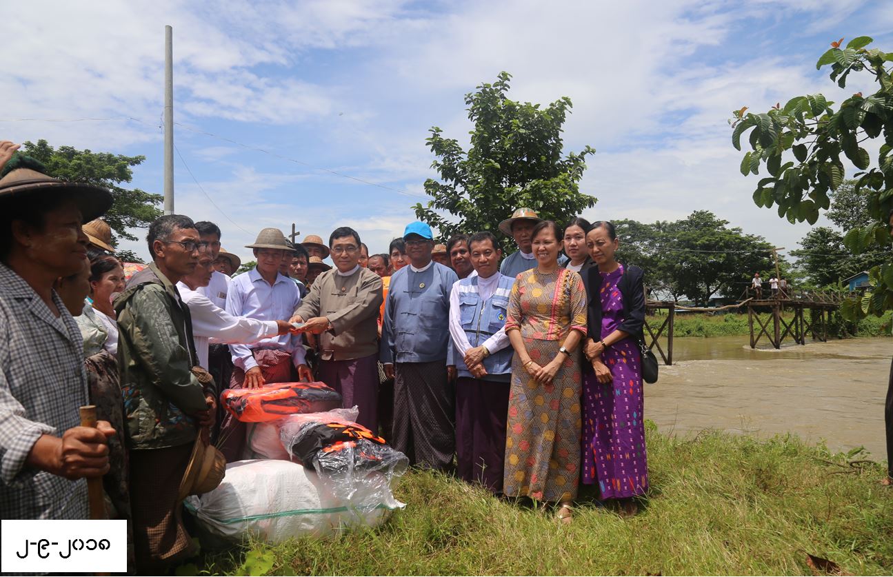 ရဲနွယ်ချောင်းရေလျှံမှုကြောင့် ဂျို့ပင်ရွာသို့ ရေများစီးဝင်သဖြင့် သဲအိတ်များ ကာရံ တားဆီး ထားမှုအခြေအနေ၊ ဇီးဖြူဘုရားတောင်ဘက်ရွာနှင့်မြောက်ဘက်ရွာ ဆက်သွယ်ထားသော တံတား ပျက်စီးမှုအခြေအနေ၊ ချောင်းရေတိုက်စားမှုကြောင့် ကမ်းပါးများပြိုကျပြီး ကျေးရွာအတွင်းသို့ ရေများ ဝင်ရောက်မှုမရှိစေရန်အတွက် ရွာသူ၊ ရွာသားများစုပေါင်းလုပ်အားဖြင့် ရေထိန်းတာ တည်ဆောက်နေမှု အခြေအနေ၊ ဆင်ကူးကျေးရွာနှင့် မိကျောင်းကူးကျေးရွာတို့ ဆက်သွယ်ထား သော သစ်သားတံတားပျက်စီးပြီး ယခုအခါ ဇက်လှေဖြင့် ကူးသန်းသွားလာနေမှုအခြေအနေ၊ သဲကျောကျေးရွာနှင့် ဝက်လူးအိုင်ကျေးရွာ ဆက်သွယ်ထားသော တံတားမျောပါပျက်စီးမှု အခြေအနေများကို လှည့်လည်ကြည့်ရှုခဲ့ပြီး ဂျို့ပင်ကျေးရွာတွင် ရေထိန်းတာသဲအိတ်ဖိုးငွေ ထောက်ပံ့ပေးခြင်း၊ ဇီးဖြူဘုရားကျေးရွာ တောင်နှင့်မြောက် ဆက်သွယ်ထားသော ရဲနွယ်ချောင်းကူးတံတား အမြန်ပြန်လည်ပြုပြင်ရန် ထောက်ပံ့ငွေ ကျပ်သိန်း(၂၀)နှင့် ကျောင်းသားလူငယ်များအတွက် အသက်ကယ်အင်္ကျီ (၂၀) ထည်တို့ကိုလည်းကောင်း၊ ဆင်ကူးကျေးရွာနှင့် မိကျောင်းကူးကျေးရွာ ဇက်လှေနှင့်စက်တပ်ဆင်ရန်အတွက် ထောက်ပံ့ငွေကျပ် (၁၅) သိန်းနှင့် အသက်ကယ်အင်္ကျီ(၂၀)ထည်တို့ကိုလည်းကောင်း၊ သဲကျော ကျေးရွာနှင့် ဝက်လူးအိုင်ကျေးရွာရှိ ပြည်သူများ လက်တလော စက်လှေ အသုံးပြုနိုင်ရန် ထောက်ပံ့ငွေကျပ် (၇)သိန်း(၅)သောင်း တို့ကို အသီးသီး ထောက်ပံ့ပေးအပ်ရာ တာဝန်ရှိသူများက လက်ခံရယူခဲ့ကြပါသည်။