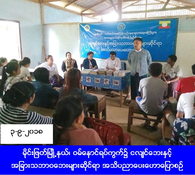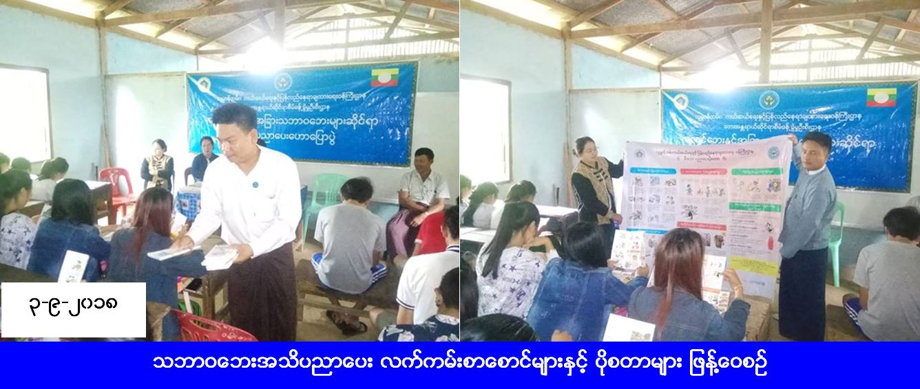 လူမှုဝန်ထမ်း၊ ကယ်ဆယ်ရေးနှင့် ပြန်လည်နေရာချထားရေးဝန်ကြီးဌာန၊ ဘေးအန္တရာယ်ဆိုင်ရာစီမံခန့်ခွဲမှုဦးစီးဌာန၊ မိုင်းဖြတ်မြို့နယ်ဦးစီးမှူးရုံးမှ တာဝန်ရှိသူများသည် (၃-၉-၂၀၁၈) ရက်နေ့၊ (၁၁း၀၀) နာရီအချိန်တွင် မိုင်းဖြတ်မြို့နယ်၊ ဝမ်နောင်ရပ်ကွက်၌ ငလျင်ဘေးနှင့် အခြားသဘာဝဘေးများဆိုင်ရာ အသိပညာပေးဟောပြောပွဲပြုလုပ်ခဲ့ရာ လူဦးရေ (၈၀) ဦး တက်ရောက်ခဲ့ပါသည်။ တာဝန်ရှိသူများက တက်ရောက်သူများထံ သဘာဝဘေးအသိပညာပေး လက်ကမ်းစာစောင်များနှင့် ပိုစတာများ ဖြန့်ဝေပေးခဲ့ကြောင်း သိရှိရပါသည်။