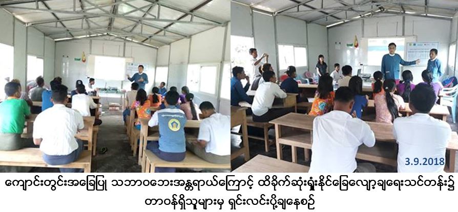 လူမှုဝန်ထမ်း၊ ကယ်ဆယ်ရေးနှင့် ပြန်လည်နေရာချထားရေးဝန်ကြီးဌာန၊ ဘေးအန္တရာယ် ဆိုင်ရာစီမံခန့်ခွဲမှုဦးစီးဌာန၊ရခိုင်ပြည်နယ်ဦးစီးမှူးရုံးမှတာဝန်ရှိသူများနှင့် LWF အဖွဲ့အစည်းပူးပေါင်း၍ စစ်တွေမြို့နယ်၊ ချီလည်ပင်းကျေးရွာ၊ အခြေခံပညာမူလွန်ကျောင်း၌ (၃-၉-၂၀၁၈) ရက်နေ့၊ (၀၉း၃၀) နာရီအချိန်တွင် ကျောင်းတွင်းအခြေပြု သဘာဝ ဘေးအန္တရာယ်ကြောင့် ထိခိုက်ဆုံးရှုံးနိုင်ခြေလျော့ချရေးသင်တန်းအား သင်တန်းသား/သူ (၂၀) ဦးဖြင့်ဖွင့်လှစ်ခဲ့ပြီး သင်တန်းကာလမှာ (၃-၉-၂၀၁၈) ရက်နေ့မှ (၄-၉-၂၀၁၈) ရက်နေ့အထိ ဖြစ်ကြောင်းသတင်းရရှိပါသည်။