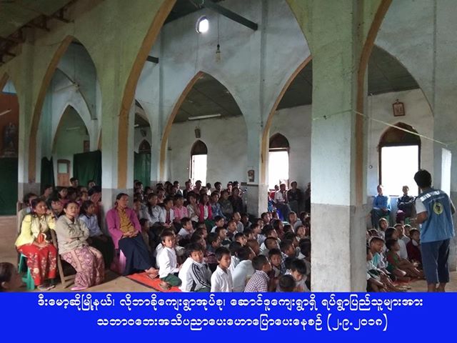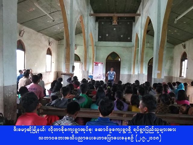 လူမှုဝန်ထမ်း၊ ကယ်ဆယ်ရေးနှင့် ပြန်လည်နေရာချထားရေးဝန်ကြီးဌာန၊ ဘေးအန္တရာယ်ဆိုင်ရာစီမံခန့်ခွဲမှုဦးစီးဌာန၊ ကယားပြည်နယ်ဦးစီးမှူးရုံးမှ တာဝန်ရှိသူများသည် (၂-၉-၂၀၁၈) ရက်နေ့တွင် ဒီးမော့ဆိုမြို့နယ်၊ လိုဘာခိုကျေးရွာအုပ်စု၊ ဆောင်ဒူကျေးရွာရှိ ရပ်ရွာပြည်သူ (၂၀၀) ဦးအား သဘာဝဘေးဆိုင်ရာအသိပညာပေးဟောပြောပေးခဲ့ပြီး တက်ရောက်သူအား လက်ကမ်းစာစောင်များကိုဝေငှခဲ့ကြောင်း သိရှိရပါသည်။