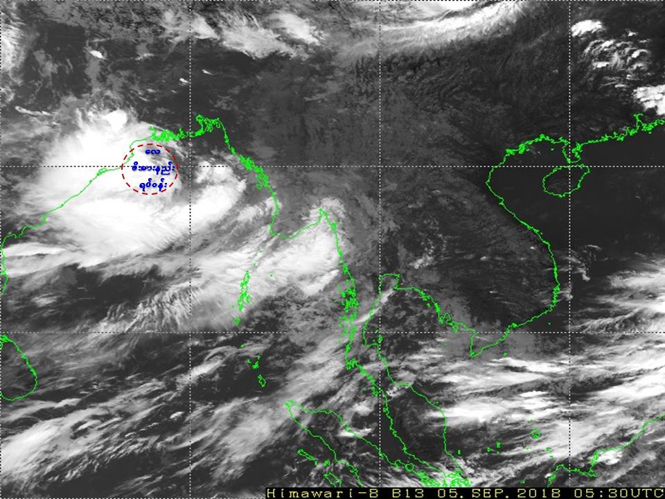 “ယနေ့မြန်မာစံတော်ချိန် (၁၁:၃၀)နာရီအချိန် တိုင်းထွာချက်များအရ ဘင်္ဂလားပင်လယ်အော် အနောက်မြောက်ပိုင်းတွင် လေဖိအားနည်းရပ်ဝန်းတစ်ခု ဖြစ်ပေါ်နေပါသည်။”