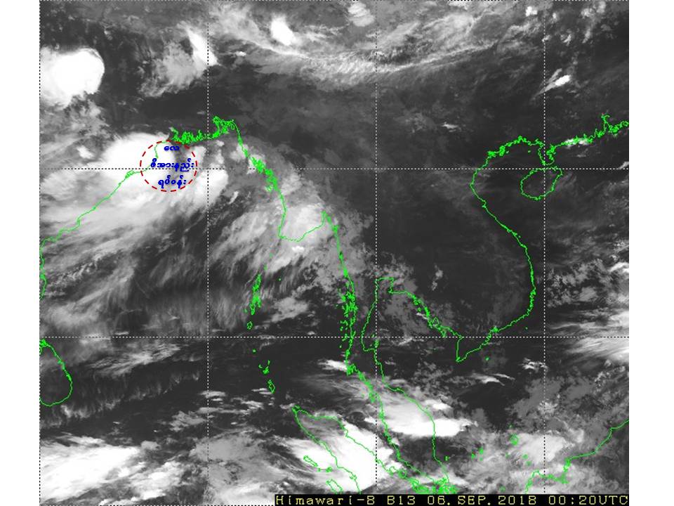 “ယနေ့မြန်မာစံတော်ချိန် (၀၆:၃၀)နာရီအချိန် တိုင်းထွာချက်များအရ ဘင်္ဂလားပင်လယ်အော်အနောက် မြောက်ပိုင်းတွင် ဖြစ်ပေါ်နေသော လေဖိအားနည်းရပ်ဝန်းသည် ဆက်လက်တည်ရှိနေပါသည်။ “