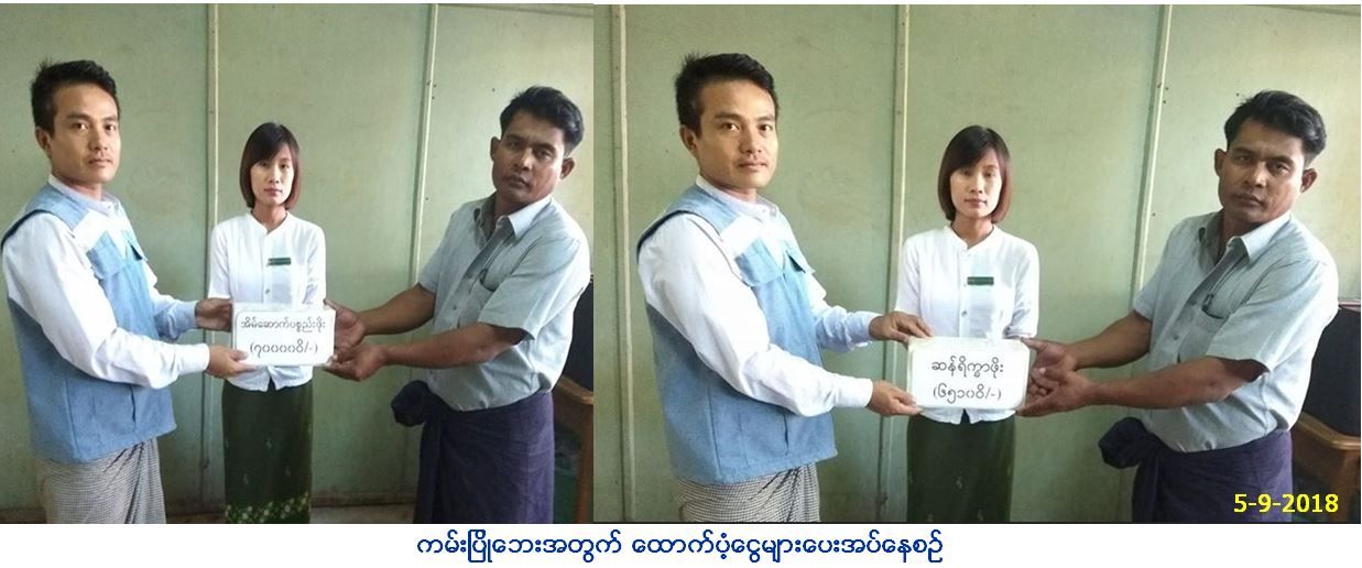 လူမှုဝန်ထမ်း၊ ကယ်ဆယ်ရေးနှင့် ပြန်လည်နေရာချထားရေးဝန်ကြီးဌာန၊ မကွေးတိုင်းဒေသကြီး၊ ဘေးအန္တရာယ်ဆိုင်ရာစီမံခန့်ခွဲမှုဦးစီးဌာန၊ ပခုက္ကူခရိုင်၊ ရေစကြိုမြို့နယ်ဦးစီးမှူးရုံးမှ တာဝန်ရှိသူများသည် ရေစကြိုမြို့နယ်၊ နွယ်နီကျေးရွာအုပ်စု၊ နွယ်နီကျွန်းကျေးရွာတွင်(၅.၉.၂၀၁၈) ရက်နေ့(၁၁း၁၀)နာရီအချိန်၌ ချင်းတွင်းမြစ်ရေတိုက်စား၍ ကမ်းပါးပြိုကျမှုကြောင့် လူနေအိမ်များ ကြိုတင်ဖျက်သိမ်းပြောင်းရွှေ့မှုများ ဆောင်ရွက်ခဲ့ကြရာ ကြိုတင်ဖျက်သိမ်းပြောင်းရွှေ့လူနေအိမ်(၇)လုံး၊ အိမ်ထောင်စု(၇)စု၊ လူဦးရေ(၃၁)ဦးတို့အတွက် ကယ်ဆယ်ရေးပစ္စည်း(၉)မျိုး၊ ဆန်ရိက္ခာဖိုး(၇)ရက်စာ (၆၅၁၀၀/-)ကျပ်၊ အိမ်ဆောက်ပစ္စည်းဖိုး (၇၀၀၀၀၀/-)ကျပ်၊ စုစုပေါင်း(၇၆၅၁၀၀/-)ကျပ်တို့အား ရေစကြိုမြို့နယ်အထွေထွေအုပ်ချုပ်ရေးဦးစီးဌာနရုံး၌ (၅.၉.၂၀၁၈)ရက်နေ့တွင် ရေစကြိုမြို့နယ်အထွေထွေအုပ်ချုပ်ရေးရုံးမှ တာဝန်ရှိသူများနှင့်အတူ နွယ်နီကျေးရွာအုပ်ချုပ်ရေးမှူး လက်ဝယ်အရောက်ထောက်ပံ့ပေးအပ်ခဲ့ကြောင်း သတင်းရရှိပါသည်။