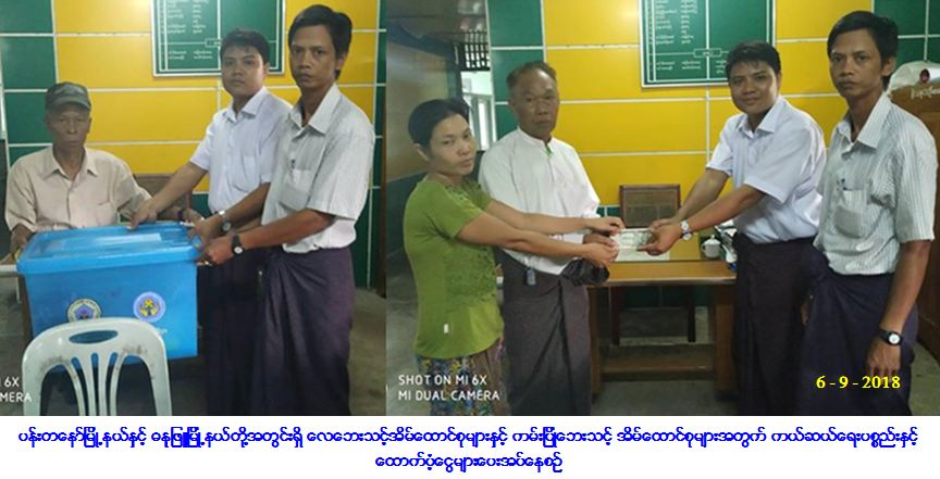 လူမှုဝန်ထမ်း၊ ကယ်ဆယ်ရေးနှင့် ပြန်လည်နေရာချထားရေးဝန်ကြီးဌာန၊ ဘေးအန္တရာယ်ဆိုင်ရာစီမံခန့်ခွဲမှုဦးစီးဌာန၊ မအူပင်ခရိုင်ဦးစီးမှူးရုံးမှ တာဝန်ရှိသူများသည် ပန်းတနော်မြို့နယ်နှင့် ဓနုဖြူမြို့နယ်တို့တွင် (၈/၂၀၁၈) တွင် ဖြစ်ပွားခဲ့သည့် လေဘေးနှင့် ကမ်းပြိုဘေးတို့အတွက် ကယ်ဆယ်ရေးပစ္စည်းနှင့် ကယ်ဆယ်ရေးရန်ပုံငွေတို့ကို မြို့နယ်တာဝန်ရှိသူများနှင့်အတူ ဘေးသင့်ပြည်သူများလက်ဝယ်သို့ (၆ – ၉ – ၂၀၁၈) ရက်နေ့တွင် အောက်ပါအတိုင်း ထောက်ပံ့ပေးအပ်ခဲ့ပါသည်-