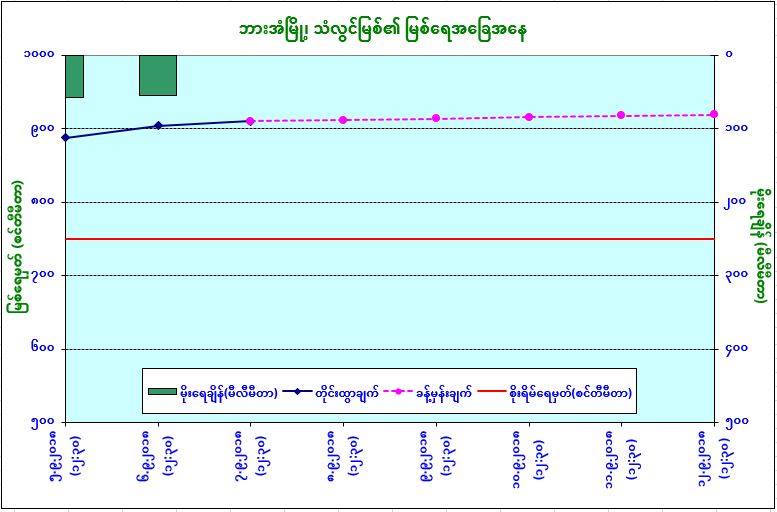 ယနေ့မြန်မာစံတော်ချိန် (၁၄:၃၀)နာရီအချိန် တိုင်းထွာချက်အရ သံလွင်မြစ်ရေသည် ဘားအံမြို့တွင် (၅)ပေခန့် ယင်းမြို့၏ စိုးရိမ်ရေမှတ်အထက်သို့ ကျော်လွန်နေပြီး နောက်(၅)ရက်အတွင်း ယင်းမြို့၏ စိုးရိမ်ရေမှတ်အထက် ဆက်လက်တည်ရှိနိုင်ပါသည်။
