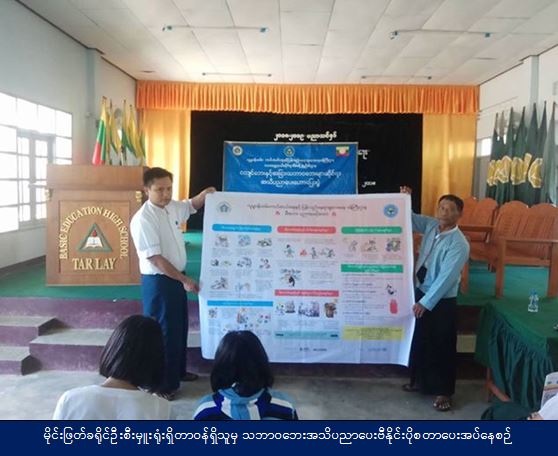 လူမှုဝန်ထမ်း ကယ်ဆယ်ရေးနှင့် ပြန်လည်နေရာချထားရေးဝန်ကြီးဌာန၊ ဘေးအန္တရာယ်ဆိုင်ရာ စီမံခန့်ခွဲမှုဦးစီးဌာန၊ မိုင်းဖြတ်ခရိုင်ဦးစီးမှူးရုံးမှ တာဝန်ရှိသူများသည် (၈-၉-၂၀၁၈) ရက်နေ့၊ နံနက် (၀၉၀၀) နာရီမှ (၁၀ဝဝ) နာရီအထိ တာလေမြို့နယ်၊ အ.ထ.က ကျောင်း၌ ကျောင်းသား/သူလူဦးရေ (၂၀၀)ဦး ခန့်အား ငလျင်ဘေးနှင့်ပတ်သက်၍ လက်တွေ့သရုပ်ပြခြင်း၊ အခြားသဘာဝဘေး အသိပေးဟောပြောမှု ပြုလုပ်ခြင်းနှင့် ဗီနိုင်းပိုစတာများ၊လက်ကမ်းစာစောင်များ ဖြန့်ဝေခဲ့ကြောင်း သတင်းရရှိပါသည်။