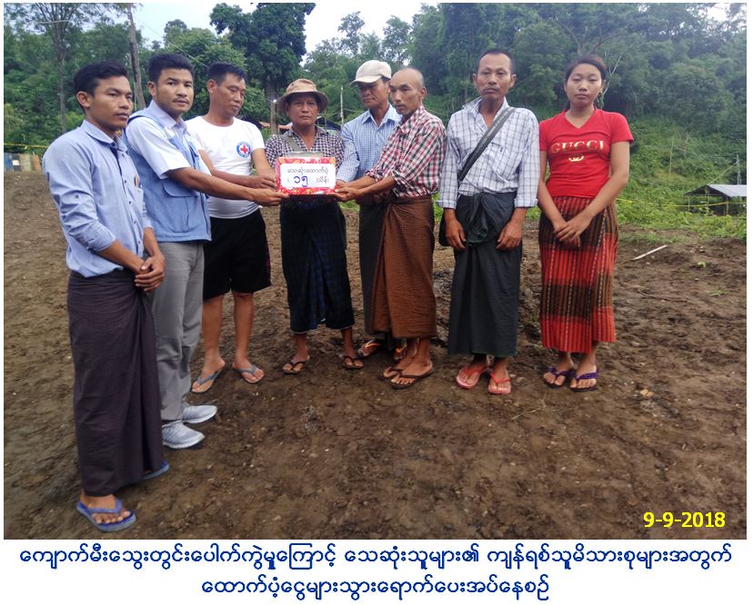 လူမှုဝန်ထမ်း၊ ကယ်ဆယ်ရေးနှင့် ပြန်လည်နေရာချထားရေးဝန်ကြီးဌာန၊ ဘေးအန္တရာယ်ဆိုင်ရာစီမံခန့်ခွဲမှုဦးစီးဌာန၊ ပခုက္ကူခရိုင်ဦးစီးမှူးရုံးမှ တာဝန်ရှိသူများသည် (၆-၉-၂၀၁၈)ရက်နေ့ ဂန့်ဂေါ်ခရိုင်၊ ဆောမြို့နယ်၊ ကျောက်ဆွဲကျေးရွာအုပ်စု၊ ကျောက်မြောင်းကျေးရွာ၏ အရှေ့ ဘက်(၄)မိုင်အကွာတွင် ဖြစ်ပွားခဲ့သော ကျောက်မီးသွေးတွင်းပေါက်ကွဲမှုကြောင့် (၉-၉-၂၀၁၈)ရက်နေ့ (၁၆း၀၀)အချိန် ထပ်တိုးစာရင်းအရ အသက်ဆုံးရှုံးခဲ့ရသော မိသားစုများထံသို့ သွားရောက်နှစ်သိမ့်စကားပြောကြားခြင်း၊ ဌာနဆိုင်ရာများဖြင့် ပေါင်းစပ်ညှိနှိုင်းခြင်း၊ ကုမ္ပဏီမှ တာဝန်ရှိသူများဖြင့် ပေါင်းစပ်ညှိနှိုင်းခဲ့ပြီး သေဆုံးသူ(၅)ဦးအတွက် (၁၅၀၀၀၀၀/-)(ကျပ်တစ်ဆယ့်ငါးသိန်းတိတိ)အား (၉-၉-၂၀၁၈)ရက်နေ့ (၁ရး၀၀)အချိန်တွင် ဆောမြို့နယ်အထွေထွေအုပ်ချုပ်ရေးဦးစီးဌာနမှ တာဝန်ရှိသူများ၊ မြို့နယ်ကြက်ခြေနီတပ်ဖွဲ့ဝင်များနှင့်အတူ ဘေးသင့် ပြည်သူများ၏ လက်ဝယ်အရောက် ထောက်ပံ့ပေးအပ်ခဲ့ပါသည်၊၊