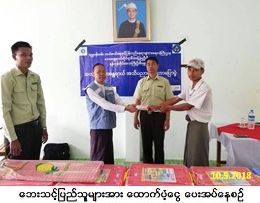လူမှုဝန်ထမ်း၊ ကယ်ဆယ်ရေးနှင့် ပြန်လည်နေရာချထားရေးဝန်ကြီးဌာန၊ ဘေးအန္တရာယ်ဆိုင်ရာစီမံခန့်ခွဲမှုဦးစီးဌာန၊ရန်ကုန်တိုင်းဦးစီးမှူးရုံးမှတာဝန်ရှိသူများသည် ရန်ကုန်တိုင်းဒေသကြီး၊ တိုက်ကြီးမြို့နယ်၊ အဖျောက်မြို့၊ အုန်းပင်ကွင်းကျေးရွာအုပ်စု၊ ရေပေါ်သောင်ကျေးရွာအုပ်စု၊ အဖျောက် (၄) ရပ်ကွက်များ၌ (၃၁-၈-၂၀၁၈) ရက်နေ့မှ (၅-၉-၂၀၁၈) ရက်နေ့အထိ ဧရာဝတီမြစ်ရေတိုက်စား၍ ကမ်းပါးပြိုကျမှုကြောင့် ကြိုတင်ဖျက်သိမ်းပြောင်းရွှေ့နေအိမ်(၁၇) လုံး၊ အိမ်ထောင်စု (၁၇) စုမှ လူဦးရေ (၅၈) ဦးတို့ဘေးသင့်ခဲ့ရာအဆိုပါဘေးသင့်ပြည်သူများအတွက် အိမ်ဆောက်ပစ္စည်းဖိုး ထောက်ပံ့ငွေ (၁,၇၀၀,၀၀၀/-) ကျပ်၊ ဆန်ရိက္ခာ (၇) ရက်စာဖိုး (၁၂၁,၈၀၀/-) ကျပ်၊ စုစုပေါင်းထောက်ပံ့ငွေ (၁,၈၂၁,၈၀၀/-) ကျပ်နှင့် ကယ်ဆယ်ရေးပစ္စည်း (၁၁) မျိုး (၁၇) အိမ်ထောင်စုစာအား (၁၀-၉-၂၀၁၈) ရက်နေ့တွင် ဘေးသင့်ပြည်သူများထံသို့ သွားရောက်ထောက်ပံ့ပေးအပ်ခဲ့ကြောင်းသတင်းရရှိပါသည်။