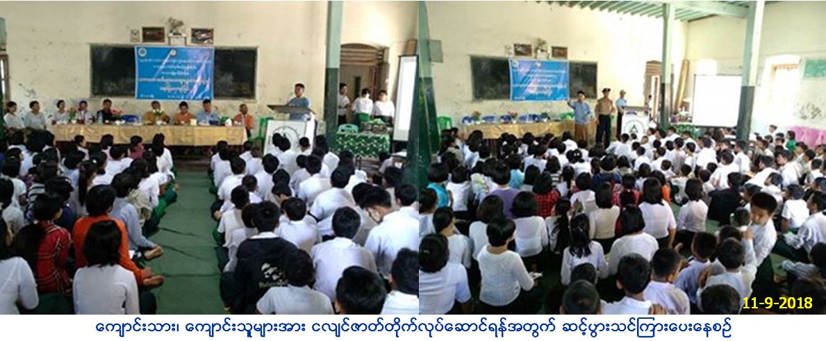 လူမှုဝန်ထမ်း၊ ကယ်ဆယ်ရေးနှင့် ပြန်လည်နေရာချထားရေးဝန်ကြီးဌာန၊ ဘေးအန္တရာယ်ဆိုင်ရာစီမံခန့်ခွဲမှုဦးစီးဌာန၊ ဘိုကလေးမြို့နယ်ဦးစီးမှူးရုံးမှ တာဝန်ရှိသူများသည် (၁၁.၉.၂၀၁၈)ရက်နေ့ နံနက်(၁၀း၀၀)နာရီအချိန်တွင် ဘိုကလေး မြို့နယ်၊ အ.ထ.က(၂) အခြေခံပညာအထက်တန်းကျောင်း၌ သဘာဝဘေးအန္တရာယ်ဆိုင်ရာအသိပညာပေးဟောပြောပွဲနှင့် ငလျင်ဘေး အန္တရာယ်ဇာတ်တိုက်လေ့ကျင့်ခြင်း အစီအစဉ်ကို ကျင်းပပြုလုပ်ခဲ့ပါသည်။ အဆိုပါအခမ်းအနားတွင် ရွေးချယ်ထားသော ကျောင်းသား/သူများ ကို ဦးစွာ အသိပညာပေးဟောပြောပွဲနှင့် ငလျင်ဇာတ်တိုက်လုပ်ဆောင်ရန်အတွက် ဆင့်ပွားသင်ကြားပေးခဲ့ပြီး မနက်ပိုင်းအစီအစဉ်ရပ်နားခဲ့ကာ နေ့လယ်ပိုင်းတွင် ၎င်းဆင့်ပွားသင်တန်းသားများမှ စာသင်ခန်းများအတွင်း တဆင့်ပြန်လည်သင်ကြားပြီး ငလျင်ဇာတ်တိုက်လေ့ကျင့်ခြင်းအား ဆောင်ရွက်ခဲ့ကြပါသည်။ အခမ်းအနားတွင်လွှတ်တော်ကိုယ်စားလှယ်များ၊ မြို့နယ်ပညာရေးဌာန၊ မြို့နယ်မီးသတ်ဦးစီးဌာန၊ မြို့နယ်ကျန်းမား ရေးဦးစီးဌာန၊ မြို့နယ်ကြက်ခြေနီသူနာပြုတပ်ဖွဲ့၊ စေတနာ့ဝန်ထမ်းလူငယ်အဖွဲ့များ၊ ဆရာ/မ၊ ကျောင်းသား/သူ စုစုပေါင်းအင်အား (၁၈၀၀)ဦး ခန့်ပါဝင်ဆောင်ရွက်ခဲ့ကြောင်း သတင်းရရှိပါသည်။