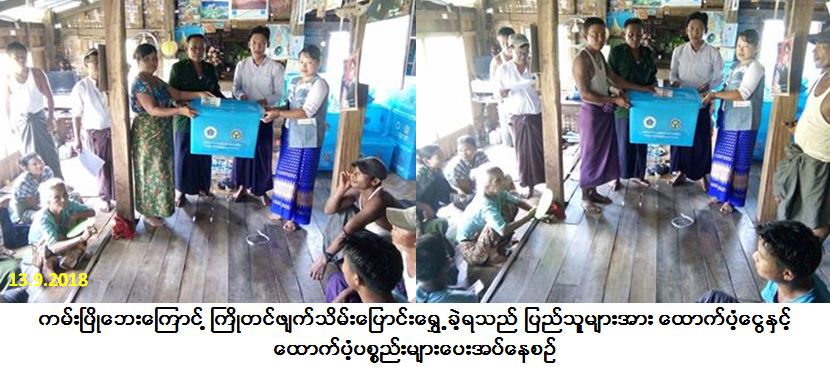 လူမှုဝန်ထမ်း၊ ကယ်ဆယ်ရေးနှင့် ပြန်လည်နေရာချထားရေးဝန်ကြီးဌာန၊ ဘေးအန္တရာယ်ဆိုင်ရာ စီမံခန့်ခွဲမှုဦးစီးဌာန၊ ဟင်္သာတခရိုင်ဦးစီးမှူးရုံးမှ တာဝန်ရှိသူများသည် ဟင်္သာတမြို့နယ်၊ အိပ်ပျက်ကျ ေးရွာအုပ်စု၊ တာငုတ်ကျေးရွာ၌ (၁၁-၉-၂၀၁၈) ရက်နေ့တွင် ဖြစ်ပွားခဲ့သော ကမ်းပြိုဘေးကြောင့် ကြိုတင်ဖျက်သိမ်းပြောင်းရွှေ့အိမ်ခြေ (၁၆) လုံးအတွက် အိမ်ဆောက်ပစ္စည်းဖိုးထောက်ပံ့ငွေ (၁,၆၀၀,၀၀၀/-) ကျပ်၊အိမ်ထောင်စု (၁၆) စုမှ လူဦးရေ (၅၄) ဦးတို့အတွက် (၂၉၆,၁၆၀/-) ကျပ်တန်ဖိုးရှိသော ကယ်ဆယ်ရေးပစ္စည်း (၁၀) မျိုး (၁၆) အိမ်ထောင်စာ၊ ဆန်ရိက္ခာဖိုး (၁၁၃,၄၀၀/-) ကျပ်၊ စုစုပေါင်းထောက်ပံ့ငွေ (၁,၇၁၃,၄၀၀/-) ကျပ်အား (၁၃-၉-၂၀၁၈) ရက်နေ့တွင် ဟင်္သာ တမြို့နယ် အထွေထွေအုပ်ချုပ်ရေးဦးစီးဌာနမှ တာဝန်ရှိသူများနှင့်အတူ ဘေးသင့်ပြည်သူများ လက်ဝယ်သို့ သွားရောက်ထောက်ပံ့ပေးအပ်ခဲ့ကြောင်း သတင်းရရှိပါသည်။