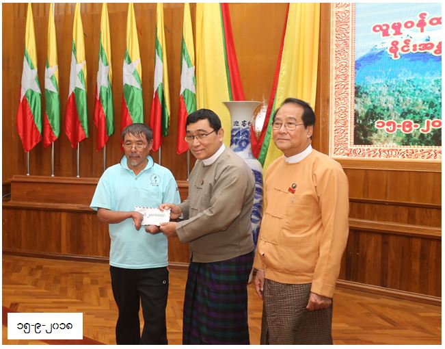 ထို့နောက် မိုင်းအန္တရာယ်ကြောင့် ထိခိုက်ဒဏ်ရာရရှိသူများ၊ အမျိုးသမီးဦးဆောင်မိသားစုများနှင့် မသန်စွမ်းသူများအတွက် ထောက်ပံ့ငွေများကို မြို့နယ်အလိုက်ပေးအပ်ထောက်ပံ့ရာ တာဝန်ရှိသူများက လက်ခံရယူကြပြီး မသန်းစွမ်းသူများကိုယ်စား ဆဒုံးမြို့မှ မဂူမီး က ကျေးဇူးတင် စကား ပြန်လည်ပြောကြားခဲ့ပါသည်။