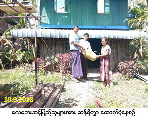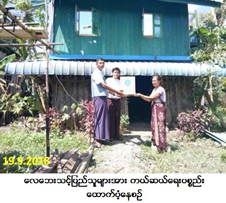 လူမှုဝန်ထမ်း၊ ကယ်ဆယ်ရေးနှင့် ပြန်လည်နေရာချထားရေးဝန်ကြီးဌာန၊ ဘေးအန္တရာယ်ဆိုင်ရာစီမံ ခန့်ခွဲမှုဦးစီးဌာန၊ မြောက်ဦးခရိုင်ဦးစီးမှူးရုံးမှတာဝန်ရှိသူများသည် ကျောက်တော်မြို့နယ်၊ အပေါက်ဝ ကျေးရွာအုပ်စု၊ ချောင်းဖျား ကျေးရွာ၌ (၁၇ – ၉ – ၂၀၁၈) ရက်နေ့တွင်လေပြင်းတိုက်ခတ်မှုကြောင့် အမိုးလန်ပျက်စီးနေအိမ် (သွပ်မိုး/ ပျဉ်ကာ/ပျဉ်ခင်း) (၁) လုံးအတွက် အိမ်ဆောက်ပစ္စည်းဖိုး (၁၀၀,၀၀၀ိ/-) ကျပ်၊ အိမ်ထောင်စု (၁) စုမှ လူဦးရေ (၅) ဦးအတွက် ဆန်ရိက္ခာ (၇) ရက်စာ (၈) ပြည် (၆) ဗူးနှင့် ကယ်ဆယ်ရေးပစ္စည်း (၁၀) မျိုး (၁) အိမ်ထောင်စု စာတို့အား (၁၉-၉-၂၀၁၈) ရက်နေ့တွင် ဘေးသင့်ပြည်သူများထံသို့ သွားရောက်ထောက်ပံ့ပေးအပ်ခဲ့ကြောင်း သတင်းရရှိပါသည်။