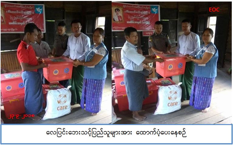 လူမှုဝန်ထမ်း၊ ကယ်ဆယ်ရေးနှင့် ပြန်လည်နေရာချထားရေးဝန်ကြီးဌာန၊ ဘေးအန္တရာယ်ဆိုင်ရာ စီမံခန့်ခွဲမှုဦးစီးဌာန၊ ဖျာပုံခရိုင်ဦးစီးမှူးရုံးမှ တာဝန်ရှိသူများသည် (၂၂-၉-၂၀၁၈) ရက်နေ့တွင် ဖျာပုံမြို့နယ်၊ ဒေါ်ညိမ်းကျေးရွာအုပ်စု၊ အေးကုန်းနှင့် ပက်ပြဲကျေးရွာတို့တွင် လေပြင်းတိုက်ခတ်မှု ကြောင့် ဓနိမိုးထရံကာနေအိမ် (၅)လုံးပြိုကျပျက်စီးခဲ့သောကြောင့် အိမ်ထောင်စု (၅)စုမှ လူဦးရေ(၁၉) ဦး လေဘေးသင့်ခဲ့ရာ care myanmar အလှူပစ္စည်း (၁) အိမ်ထောင်လျှင် (၁)အိတ်နှုန်းဖြင့် (၅)အိတ်နှင့် ကယ်ဆယ်ရေးပစ္စည်းများကို လေဘေးသင့်ပြည်သူများလက်ဝယ်သို့ (၂၃-၉-၂၀၁၈) ရက်နေ့တွင်ကွင်းဆင်း၍ သွားရောက်ထောက်ပံ့ပေးအပ်ခဲ့ကြောင်း သိရှိရပါသည်။