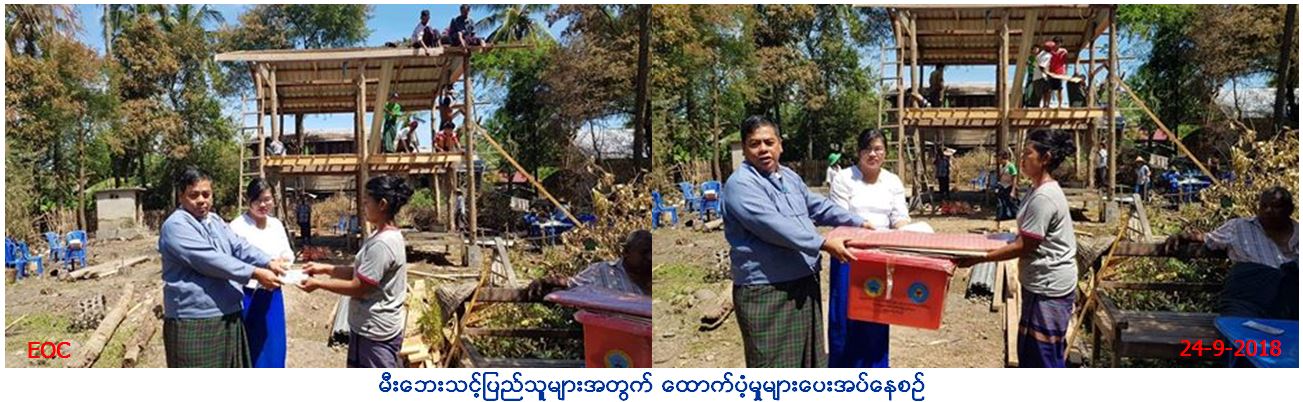 လူမှုဝန်ထမ်း၊ ကယ်ဆယ်ရေးနှင့်ပြန်လည်နေရာချထားရေးဝန်ကြီးဌာန၊ ဘေးအန္တရာယ်ဆိုင်ရာစီမံခန့်ခွဲမှုဦးစီးဌာန၊ ပြည်ထောင်စုနယ်မြေ၊ နေပြည်တော်တိုင်းဦးစီးမှူးရုံးမှ တိုင်းဦးစီးမှူးနှင့် တာဝန်ရှိသူများသည် (၂၃.၉.၂၀၁၈)ရက်နေ့တွင် ပျဉ်းမနားမြို့နယ်အတွင်း ရွာသစ်ကျေးရွာ အုပ်စု၊ ကျွန်းကုန်းကျေးရွာတွင် မီးဘေးဖြစ်ပွားမှုကြောင့် လူနေအိမ်(၁)လုံး မီးလောင်ကျွမ်းခြင်းအတွက် အိမ်ဆောက်ပစ္စည်းဖိုးငွေ (၂၀၀၀၀၀/-) ကျပ်၊ လူဦးရေ(၅)ဦးအတွက် ဆန်ဖိုးငွေ(၁၀၅၀၀/-)ကျပ်၊ စုစုပေါင်းရန်ပုံငွေ (၂၁၀၅၀၀/-)ကျပ်နှင့် (၃၇၃၅၃/-)ကျပ်တန်ဖိုးရှိ ကယ်ဆယ်ရေး ပစ္စည်း (၁၆)မျိုး(၁)အိမ်ထောင်စာတို့အား (၂၄.၉.၂၀၁၈)နေ့ (၁၁း၃၀)အချိန်တွင် ပြည်သူများလက်ဝယ်သို့ သွားရောက်ထောက်ပံ့ပေးအပ်ခဲ့ ကြောင်း သတင်းရရှိပါသည်။
