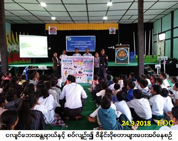 လူမှုဝန်ထမ်း၊ ကယ်ဆယ်ရေးနှင့် ပြန်လည်နေရာချထားရေးဝန်ကြီးဌာန၊ ဘေးအန္တရာယ်ဆိုင်ရာစီမံ ခန့်ခွဲမှုဦးစီးဌာန၊ ဖလမ်းခရိုင်ဦးစီးမှူးရုံးမှတာဝန်ရှိသူများသည် ချင်းပြည်နယ်၊ ဖလမ်းခရိုင်၊ ဖလမ်းမြို့ရှိ အ.ထ.က (၁) ကျောင်း၌ (၂၄-၉-၂၀၁၈) ရက်နေ့၊ နေ့လည် (၁၃း၀၀) နာရီအချိန်တွင် ငလျင်ဘေး၊ မီးဘေးနှင့် မုန်တိုင်းဘေး အန္တရာယ်များအကြောင်း သိကောင်းစရာများနှင့် ဆောင်ရန်/ ရှောင် ရန်အချက်များအား ဆွေးနွေးဟောပြောခဲ့ရာ ကျောင်းသား/သူ (၂၅၀) ဦးတက်ရောက်ခဲ့ကြပြီး တက်ရောက်လာသူများအား အသိပညာပေးဗီဒီယိုပြသခြင်း၊ ဘေး (၈) မျိုးပါ လက်ကမ်းစာစောင်များ ဖြန့်ဝေခြင်းနှင့် ငလျင်ဘေးအန္တရာယ်ဆိုင်ရာ ဗီနိုင်းပိုစတာများအား ပေးအပ်ခဲ့ကြောင်းသတင်းရ ရှိပါသည်။