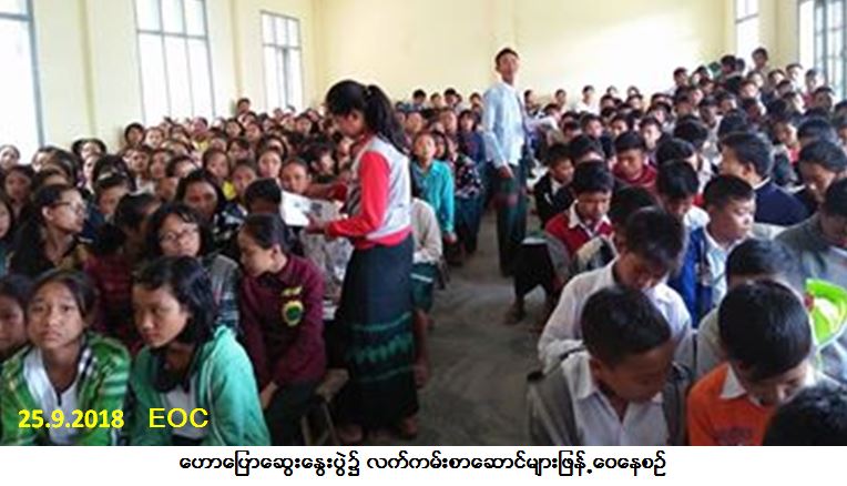 လူမှုဝန်ထမ်း၊ ကယ်ဆယ်ရေးနှင့် ပြန်လည်နေရာချထားရေးဝန်ကြီးဌာန၊ ဘေးအန္တရာယ်ဆိုင်ရာစီမံ ခန့်ခွဲ မှုဦးစီးဌာန၊ ဖလမ်းခရိုင်ဦးစီးမှူးရုံးမှတာဝန်ရှိသူများသည် ချင်းပြည်နယ်၊ ဖလမ်းခရိုင်၊ ဖလမ်းမြို့ရှိ အ.ထ.က (၃) စာသင်ကျောင်း၌ (၂၅-၉-၂၀၁၈) ရက်နေ့၊ နေ့လည် (၁၄း၀၀) အချိန်တွင် ငလျင်ဘေးအန္တရာယ်နှင့် အခြားဘေးအန္တရာယ်တို့ကြုံတွေ့လာပါက ဆောင်ရန်/ရှောင်ရန် အချက်များ အား ဟောပြောဆွေးနွေးခဲ့ကြရာ ဆရာ/ဆရာမ၊ ကျောင်းသား/သူ (၃၀၀) ဦး တက်ရောက်ခဲ့ကြပြီး တက်ရောက်လာသူများအား ဘေးအန္တရာယ် ဆိုင်ရာ အသိပညာပေး ဗီဒီယိုပြသခြင်းနှင့် ဘေး(၈)မျိုးပါ လက်ကမ်းစာစောင်ဖြန့်ဝေခြင်းများ ဆောင်ရွက်ခဲ့ကြောင်း သတင်းရရှိပါသည်။