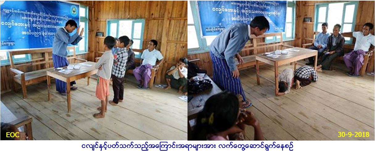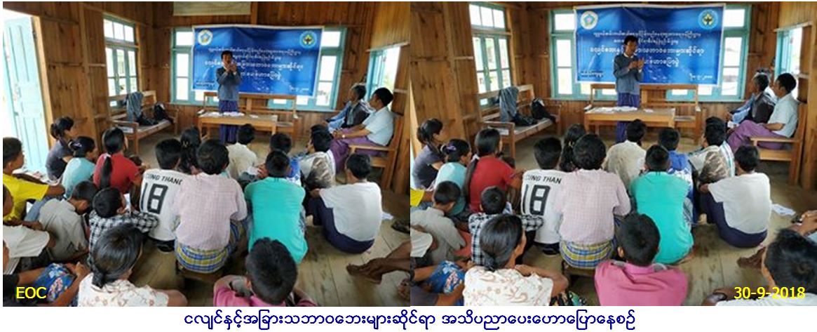 လူမှုဝန်ထမ်း၊ ကယ်ဆယ်ရေးနှင့်ပြန်လည်နေရာချ ထားရေးဝန်ကြီးဌာန၊ ဘေးအန္တရာယ်ဆိုင်ရာစီမံ ခန့်ခွဲမှုဦးစီးဌာန၊ ချင်းပြည်နယ်ဦးစီးမှူးရုံးမှ တာဝန်ရှိသူများသည် (၃၀.၉.၂၀၁၈)ရက်နေ့တွင် ချင်းပြည်နယ်၊ ဟားခါးခရိုင်၊ ထန်တလန်မြို့နယ်၊ ဗမ်ဘိုင်ကျေးရွာရှိ စာကြည့်တိုက်တွင် ငလျင်နှင့်အခြားသဘာဝဘေးများဆိုင်ရာ အသိ ပညာပေးဟောပြောပွဲအားကျင်းပပြုလုပ်ခဲ့ပြီး လက်ကမ်းစာစောင်နှင့် မုန့်များဝေငှခဲ့ကြောင်း သတင်းရရှိပါသည်။